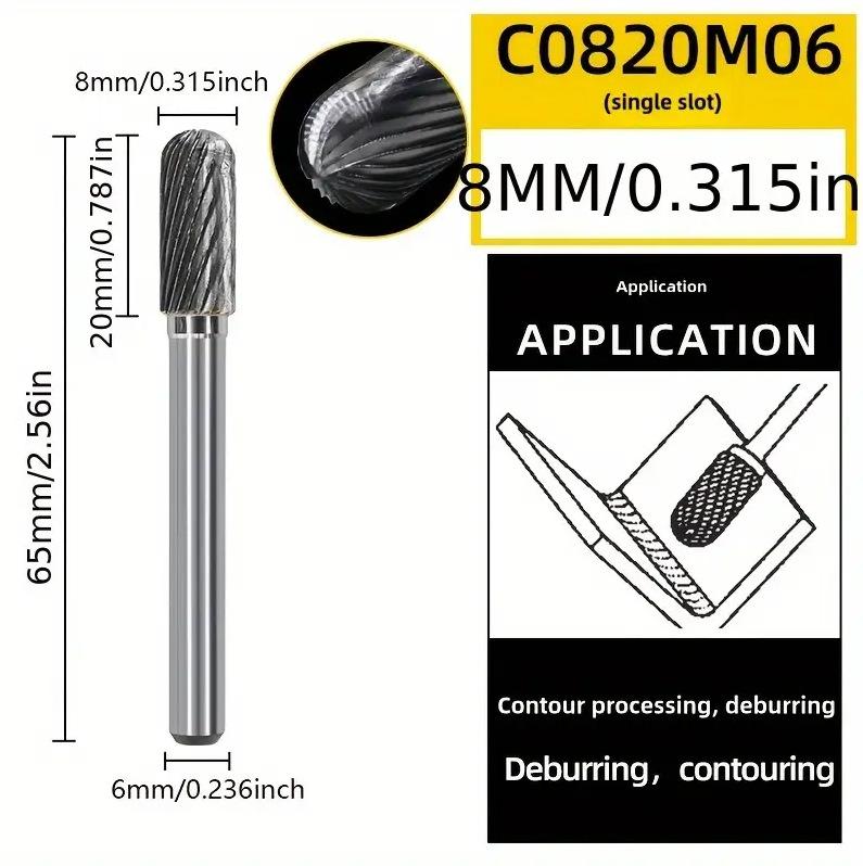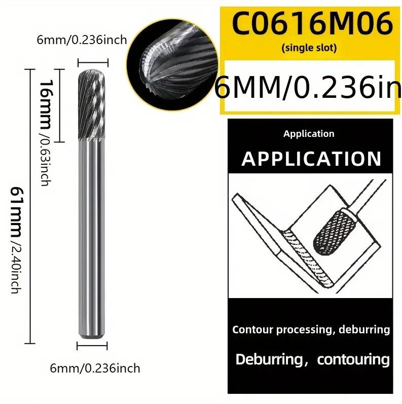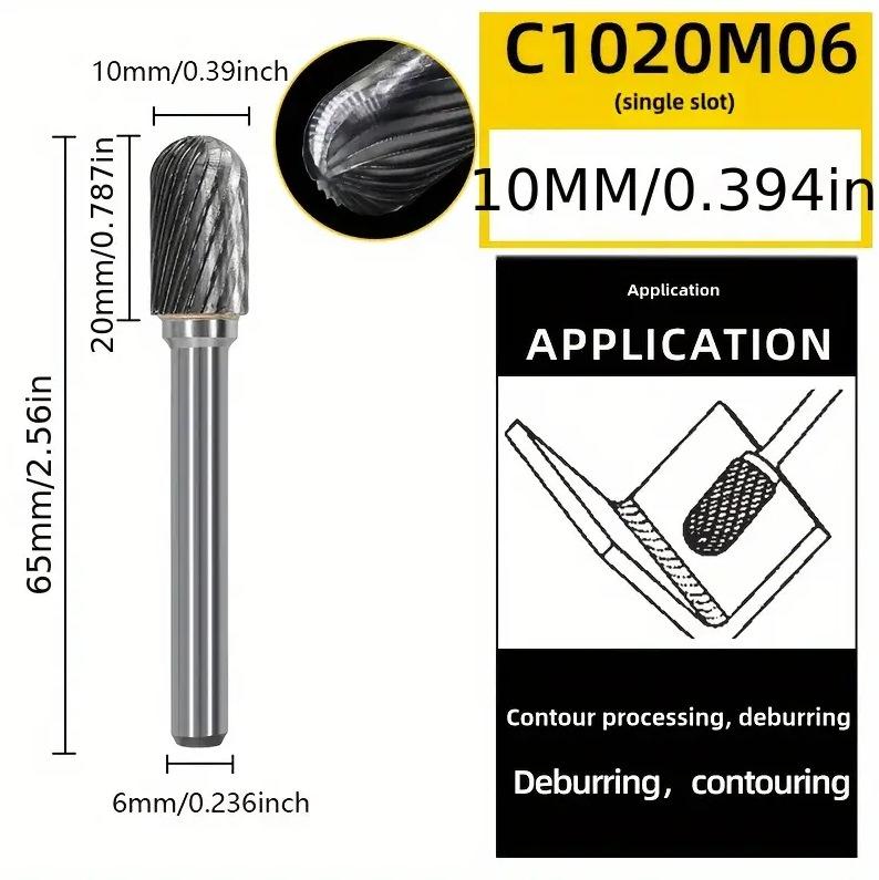 Ferramenta de Retífica para Madeira Tipo C Cabeça de Retífica 6mm Conjunto Fresa Metal Duro Lima Rotativa de Metal Duro Cabeça de Retífica de Aço Tungstênio Retificadora
