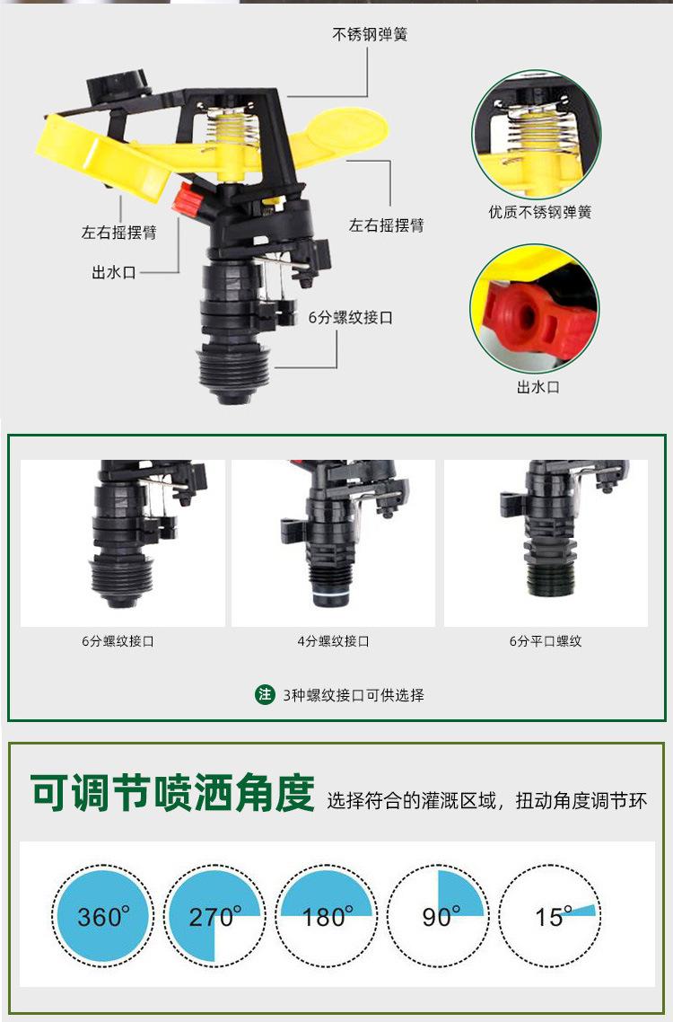 Fornecimento do fabricante irrigação de jardim irrigação agrícola aspersor de braço oscilante aspersor rotativo de braço oscilante de plástico de 4 pontos com ângulo controlável