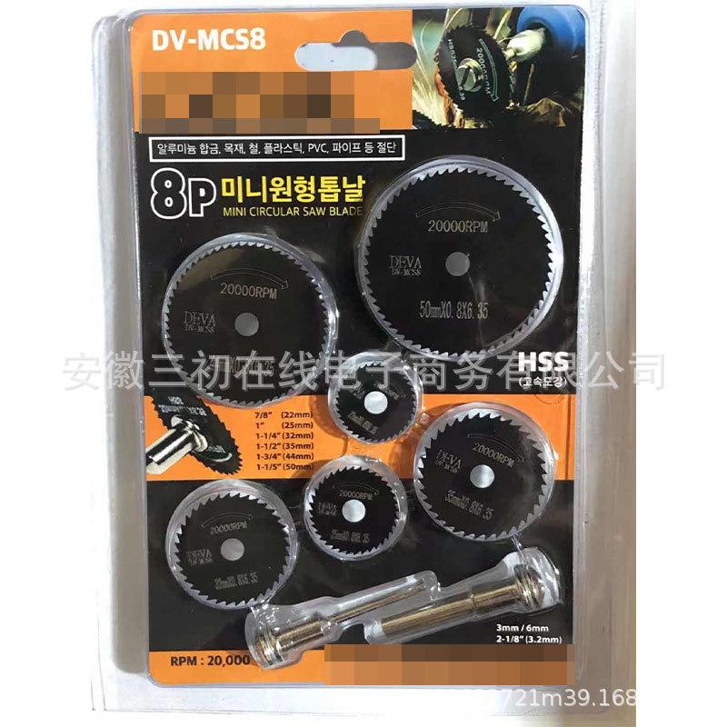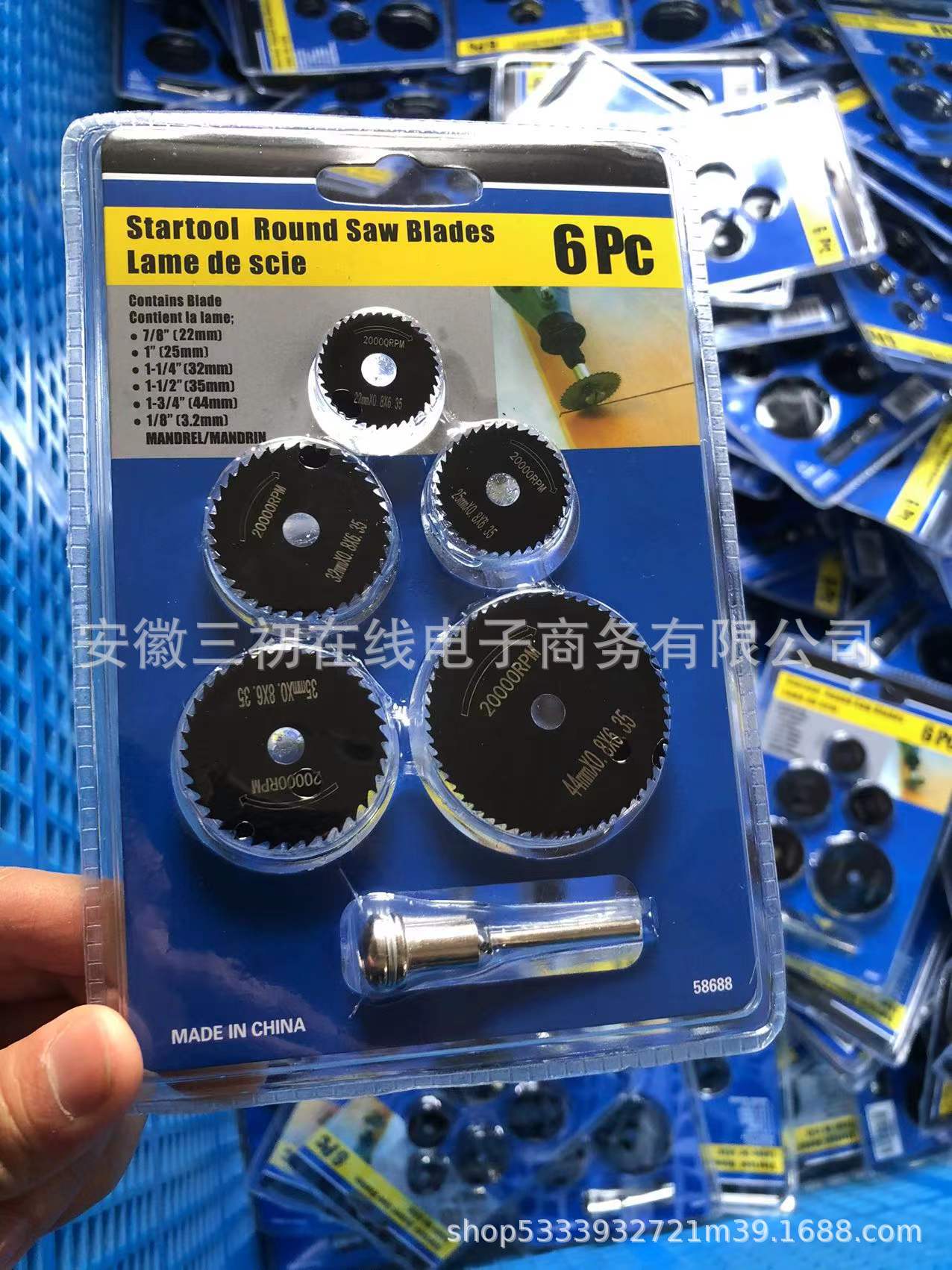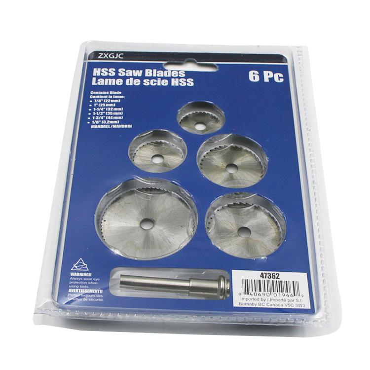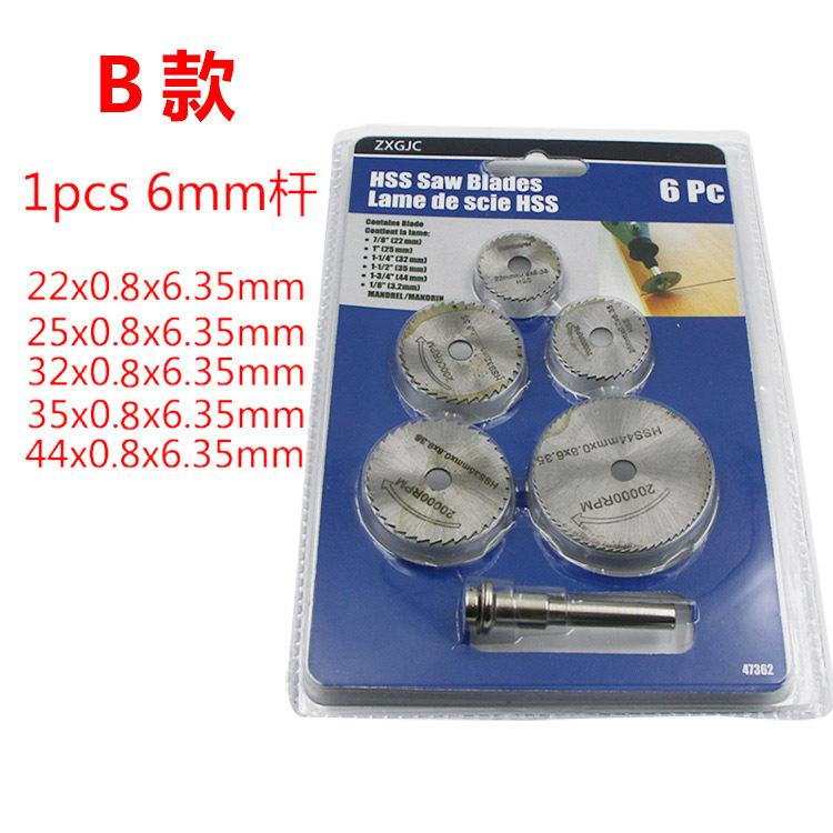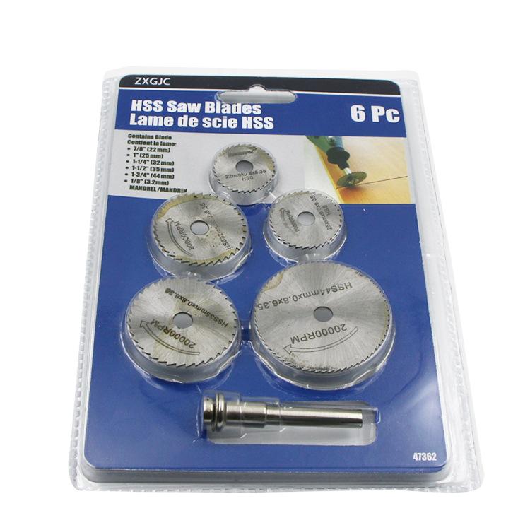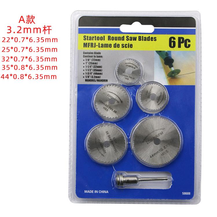 As especificações das lâminas de serra de 6 peças são: Tipo A 22mm, 25mm, 32mm, 35mm, 44mm, com um eixo de 3,2mm. Peso: 80g por conjunto.