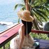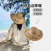 Chapéu de Palha Feminino Verão Férias à Beira-Mar Chapéu de Praia Ráfia Letra Cadarço Aba Larga Combina com Tudo Proteção Solar Chapéu Fresco