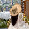 M (56-58cm) sun embroidered letter raw edge lace lace-up straw hat