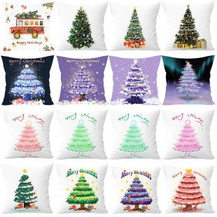 Nova Capa de Almofada Decorativa para Sala de Estar com Estampa de Árvore de Natal Decoração de Casa Transfronteiriça Estudo Natal Sofá Almofada Fronha