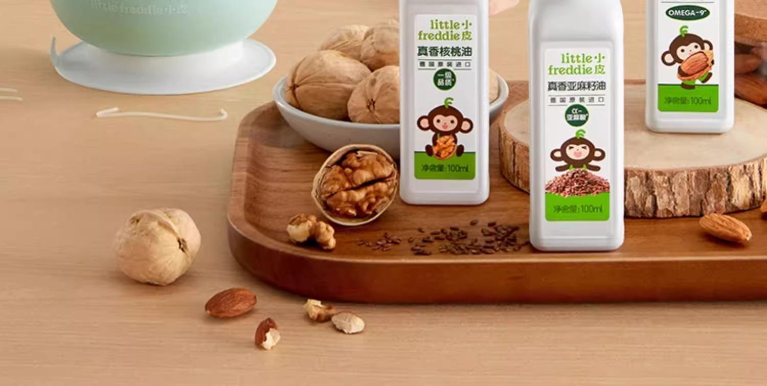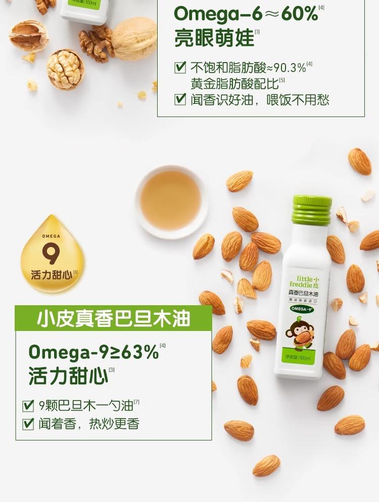 Pele pequena importada óleo de noz óleo de linhaça óleo de amêndoa crianças óleo refogado bebê suplemento alimentar óleo atacado