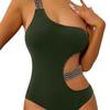 2025 Europeu e Americano Novo Estilo Comércio Exterior Transfronteiriço Maiô Biquíni Feminino de Uma Peça Cor Sólida Ombro Único Justo Sexy Sem Costas