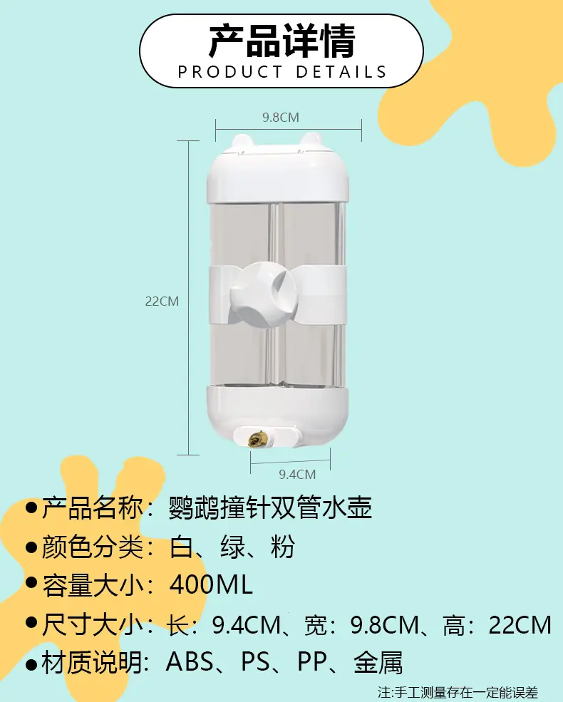 Bebedouro para Pássaro Papagaio Calopsita Bico Garrafa de Água Bebedouro Automático Mainá Ararajuba Peônia Alimentador de Água