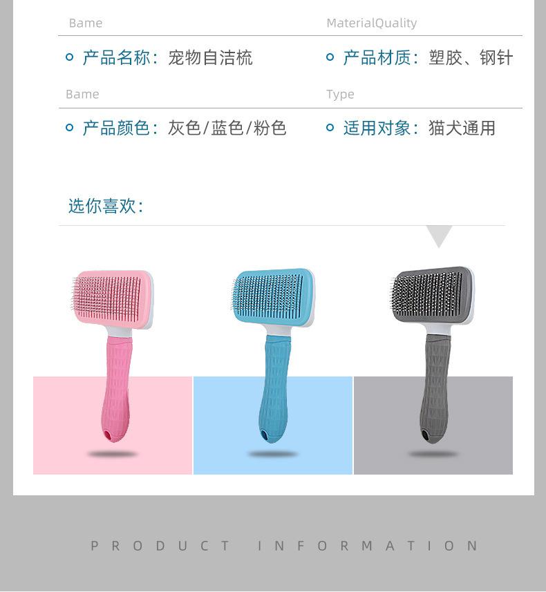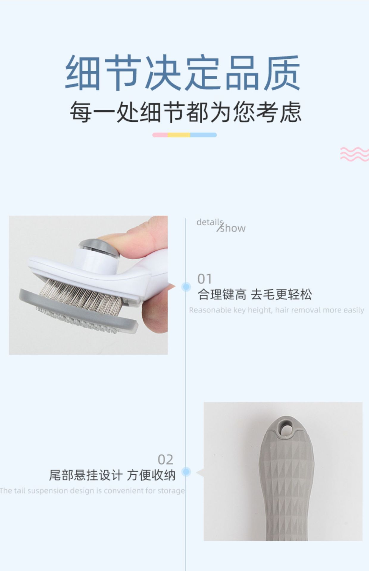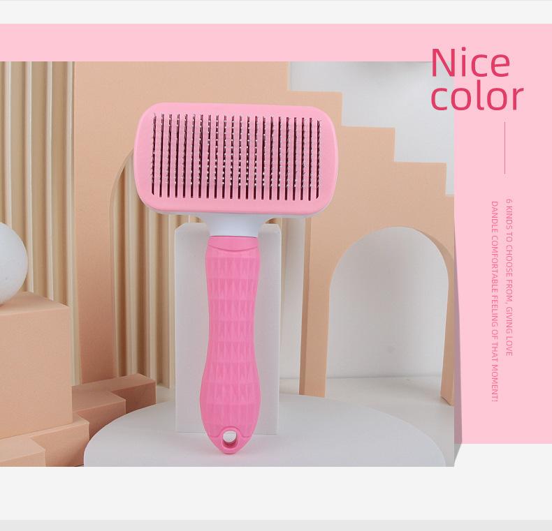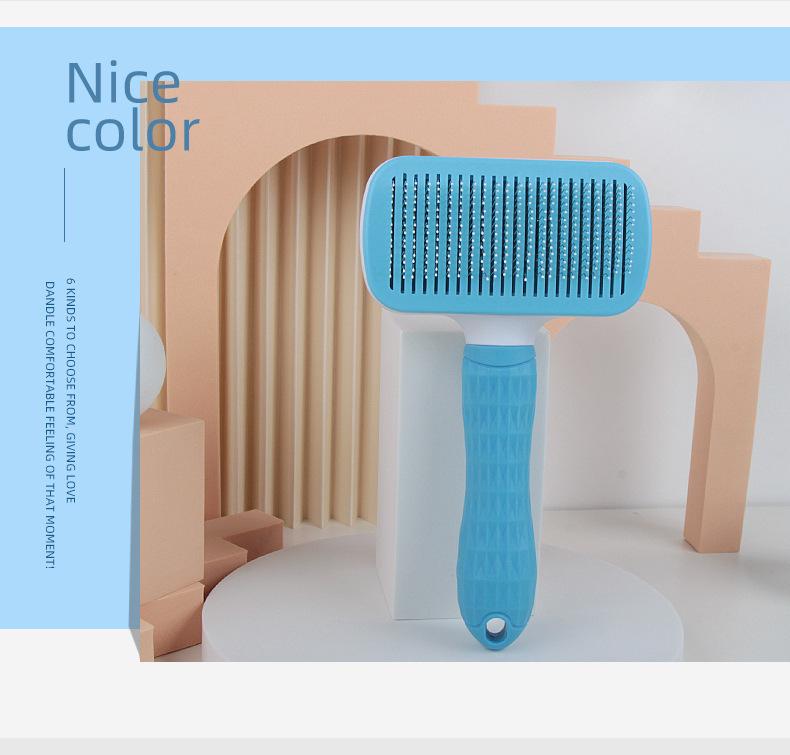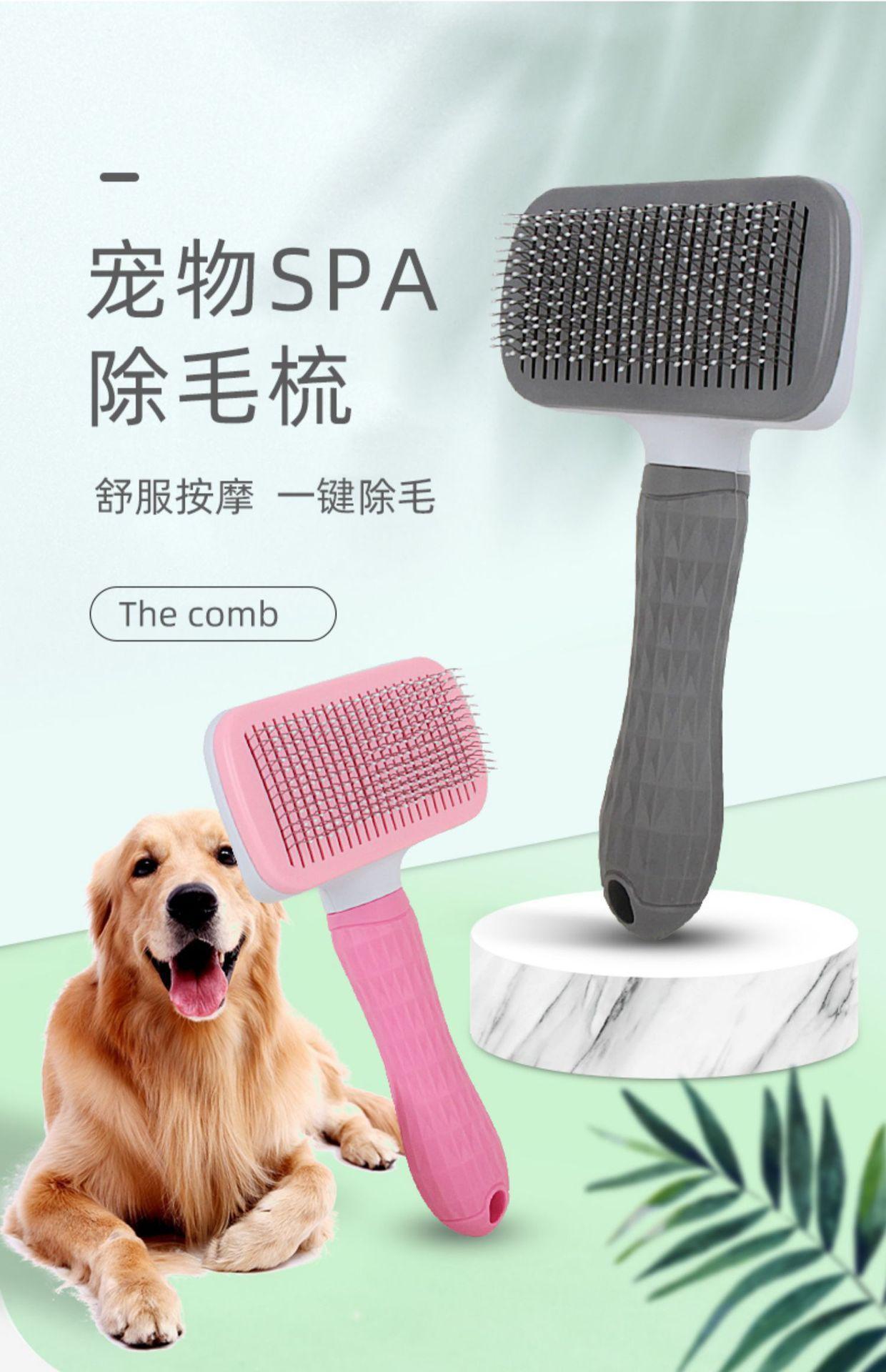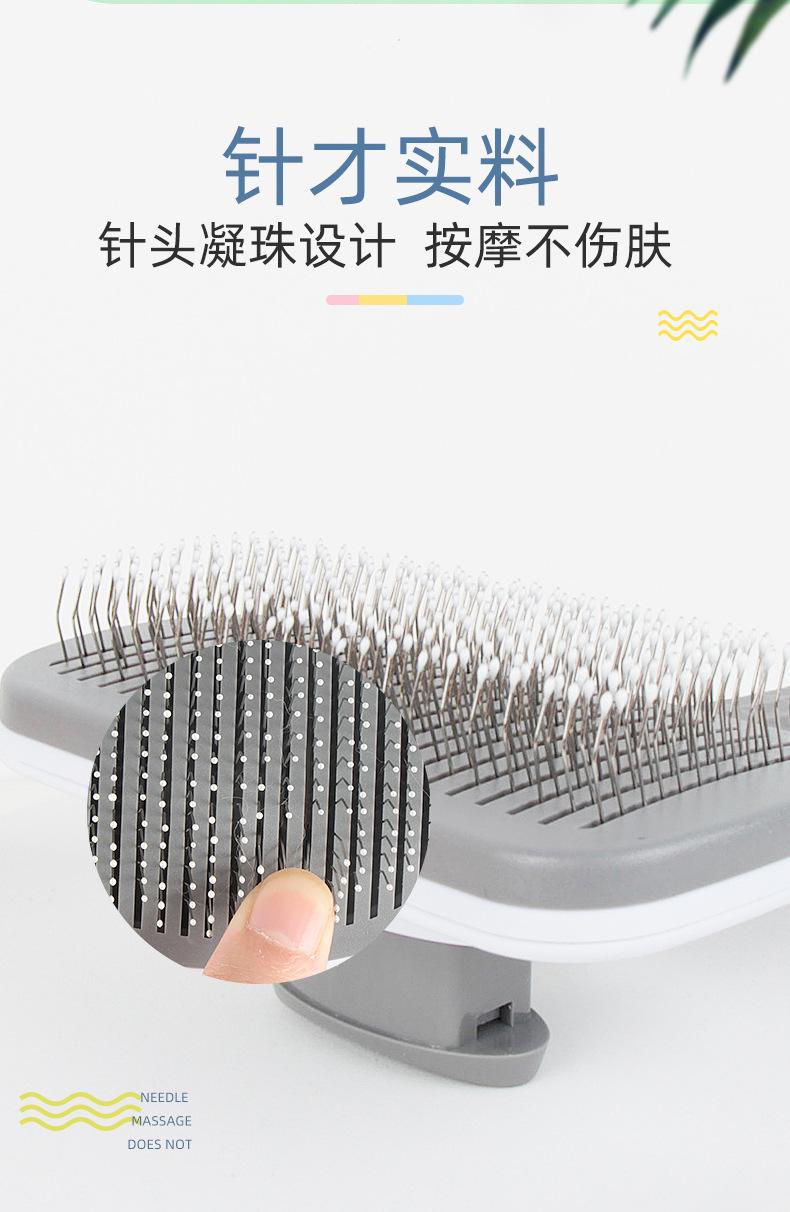 Pente para Animais de Estimação Pente para Gatos com Cabo de Borracha Macia de Um Clique Agulha Fina Pente para Massagem de Gatos Remoção de Pelos Suprimentos de Limpeza Transfronteiriços