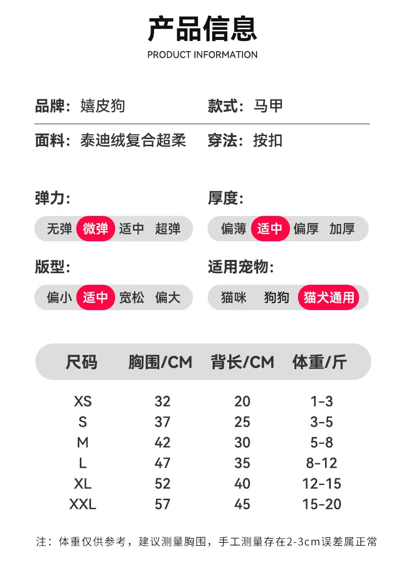 XS (recommended weight 1-3 pounds), S (recommended weight 3-5 pounds), M (recommended weight: 5-8 pounds), L (...
