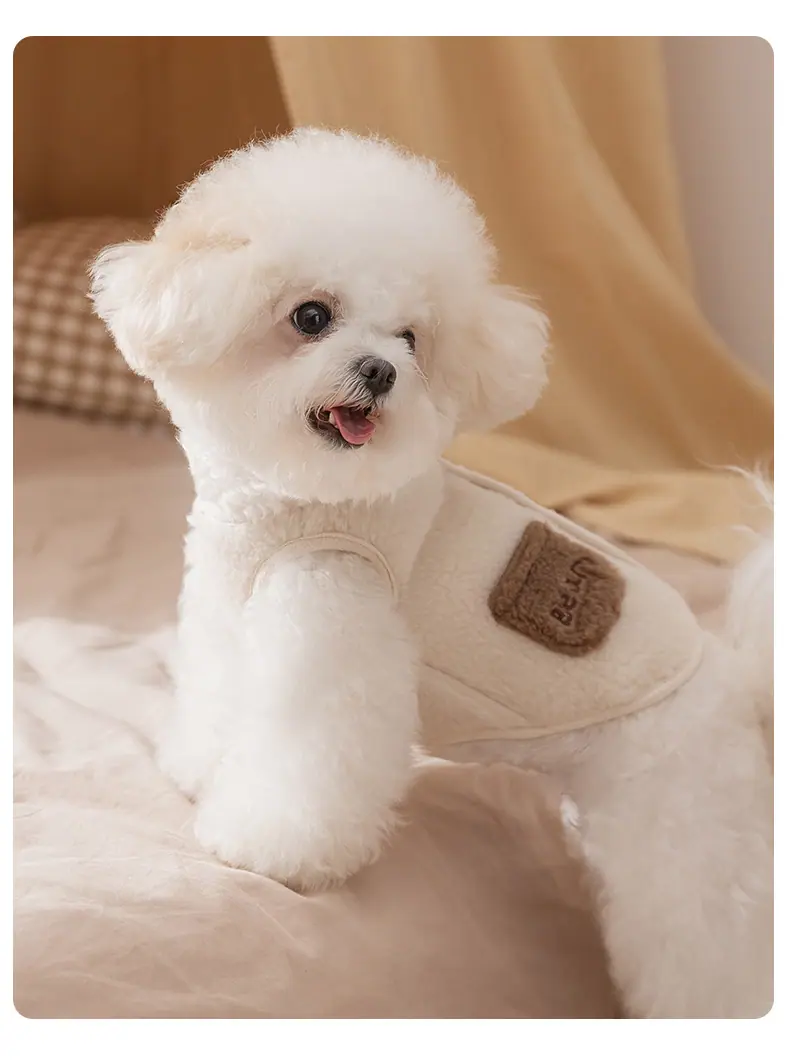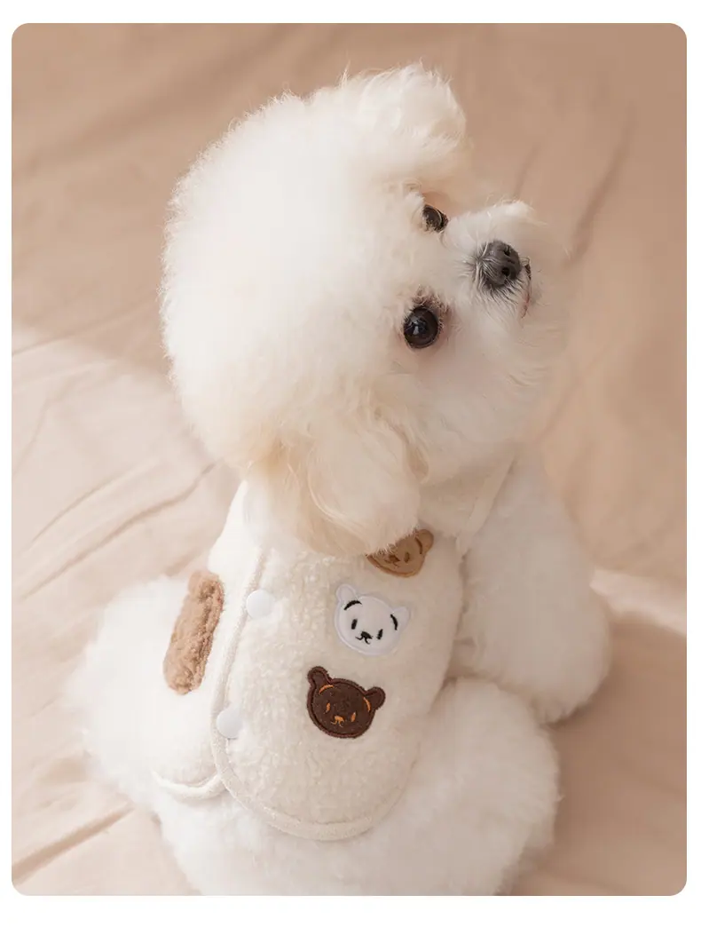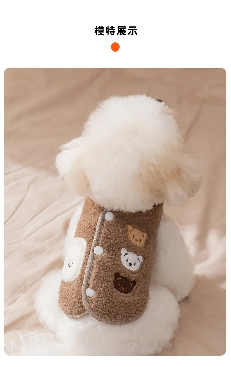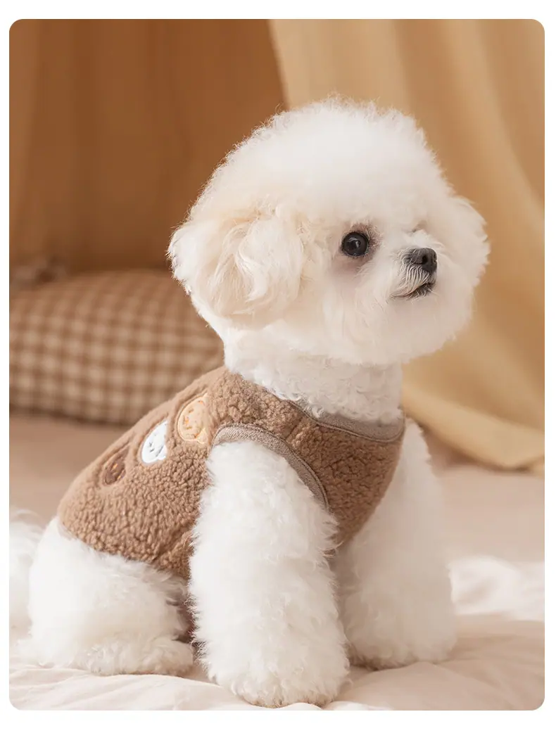 Roupas para Cachorro Bordado Ursinho Fofo Outono e Inverno Quente Bichon Cachorro Pequeno Colete Sem Mangas Fleece Roupa para Pet