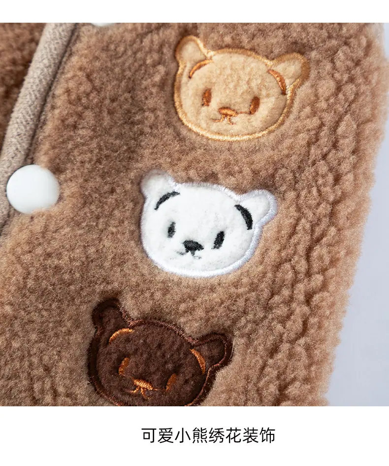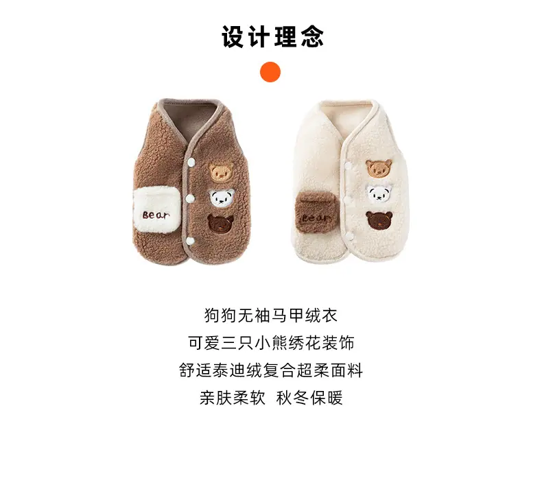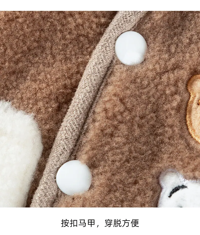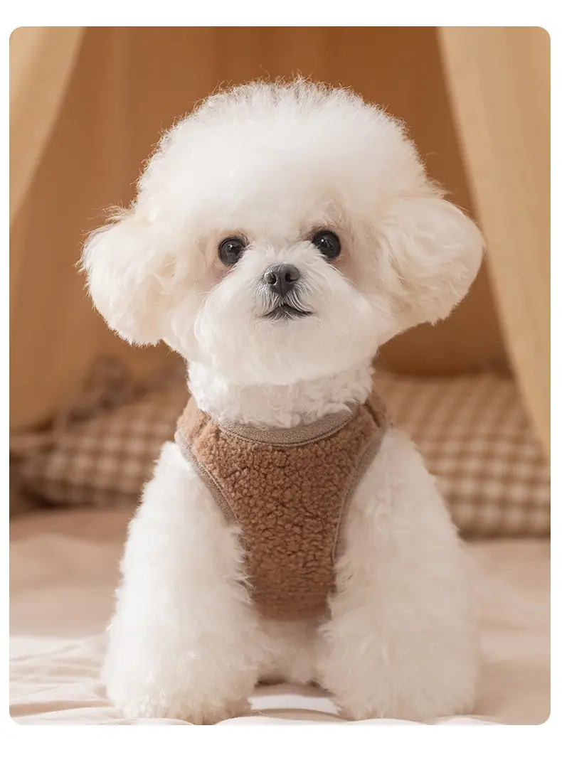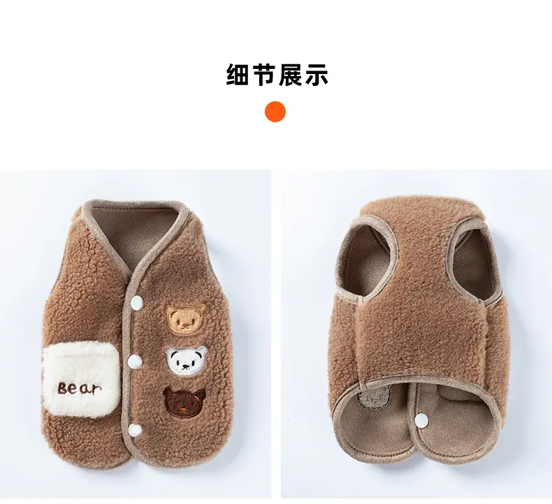 Roupas para Cachorro Bordado Ursinho Fofo Outono e Inverno Quente Bichon Cachorro Pequeno Colete Sem Mangas Fleece Roupa para Pet