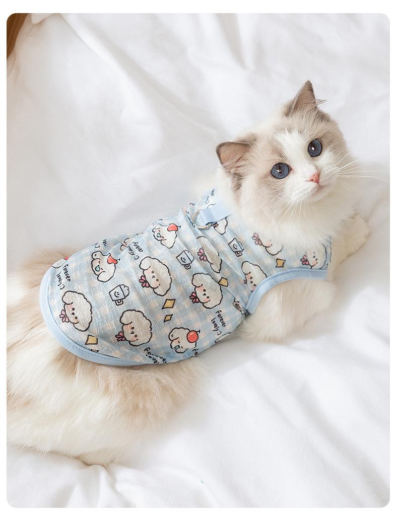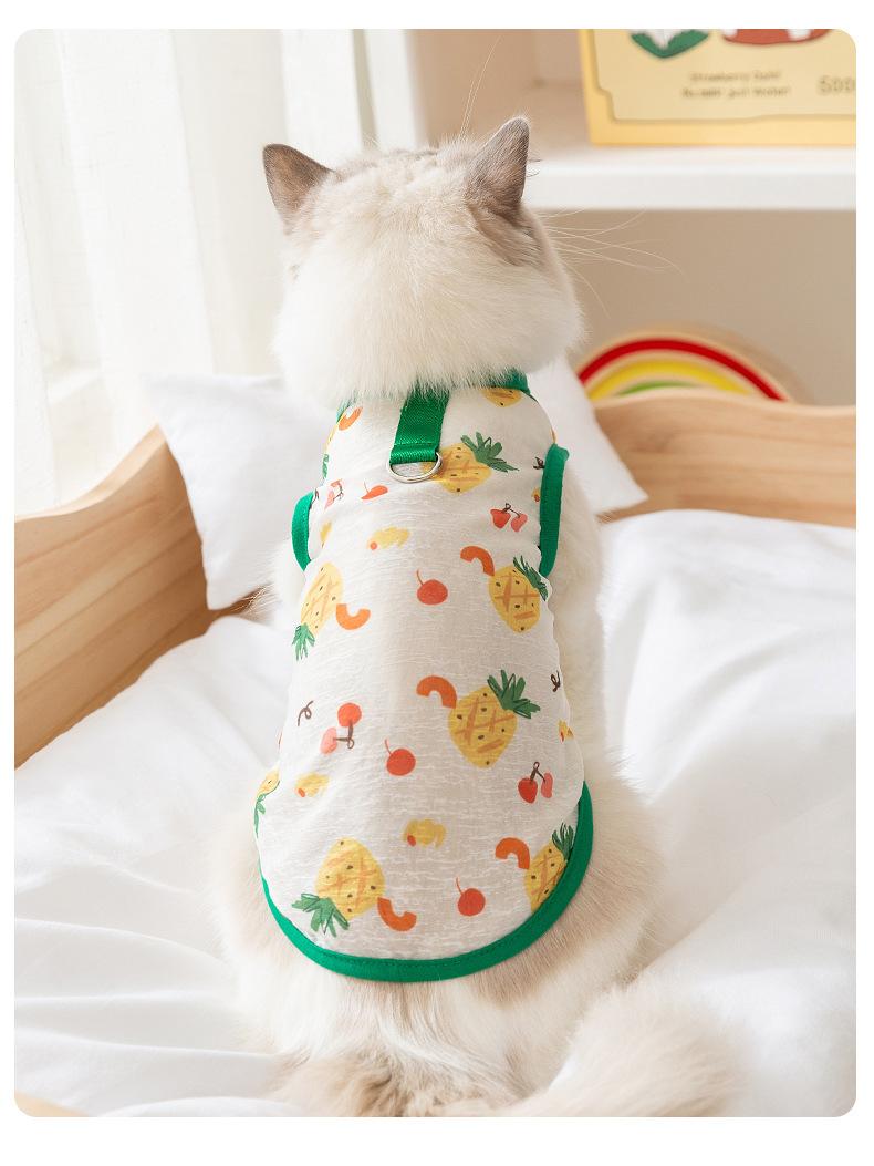 Verão novo desenho animado fofo vento estampa completa pet colete de duas pernas pode puxar roupas para animais de estimação roupas para cães e gatos
