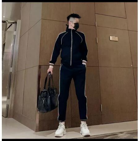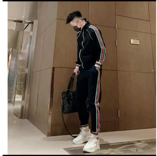 Compre Moda Primavera e Outono 2024 Marca Roupa Esportiva Casual Masculina de Manga Comprida Calças de Três Listras Masculinas Duas Peças no atacado no Joom.pro