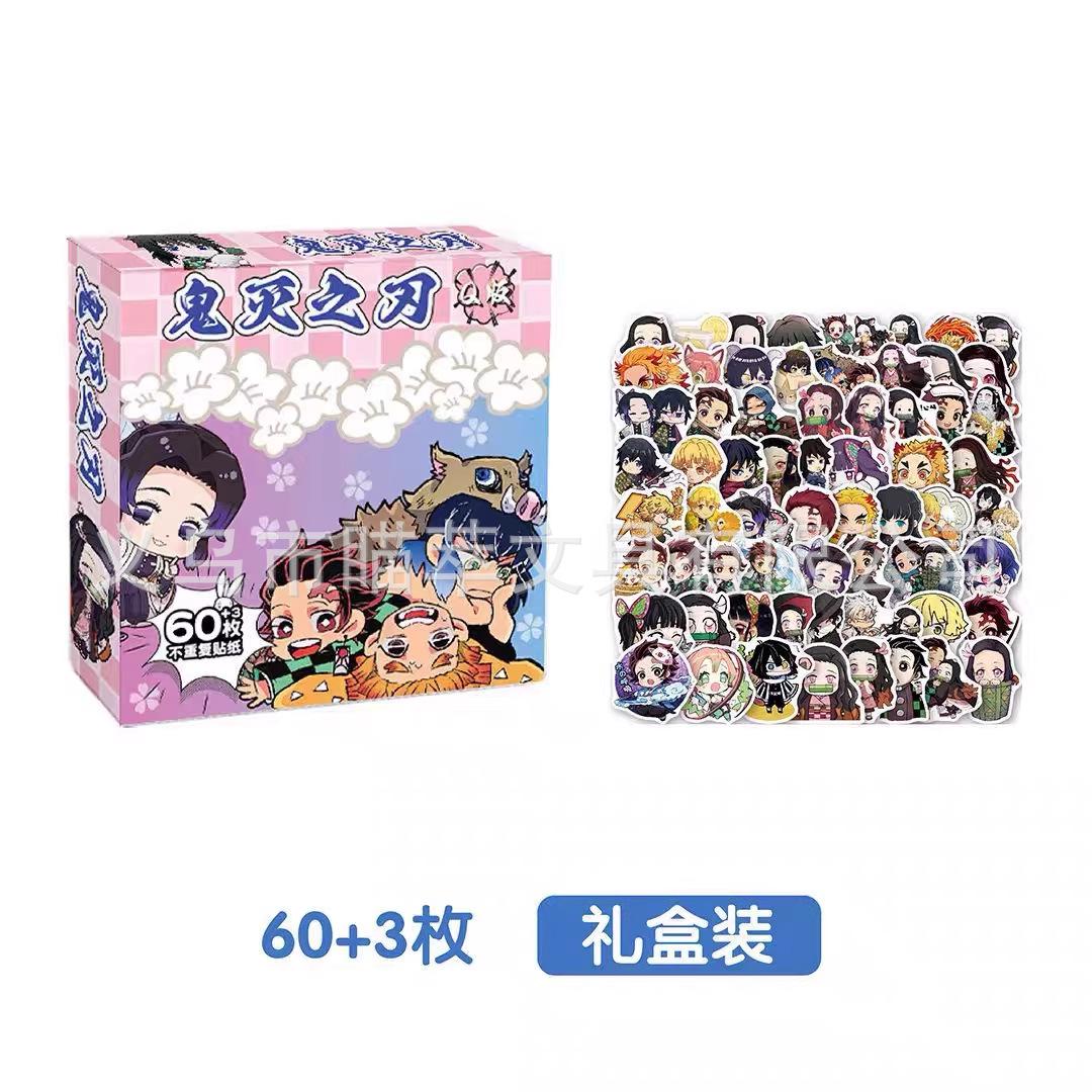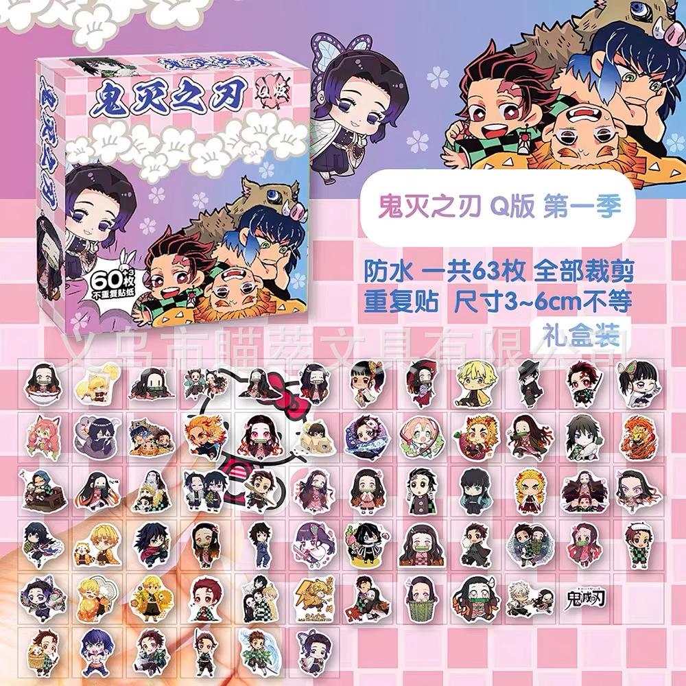 Demon Slayer Caixa de Presente de Diário de 63 Peças Adesivos Anime Japonês Impermeáveis PVC Autoadesivos Decoração de Computador Adesivos para Garrafa de Água
