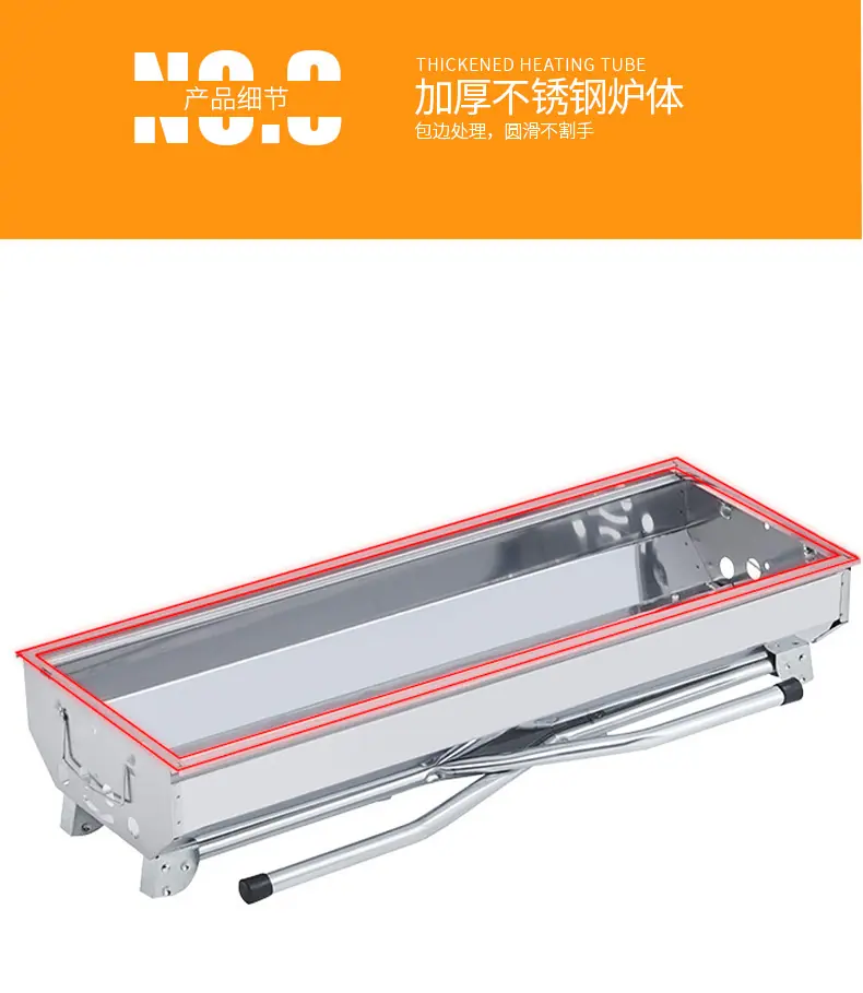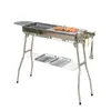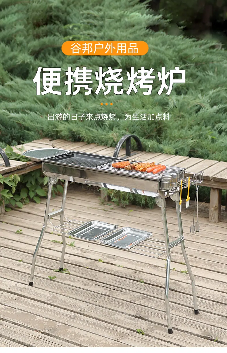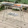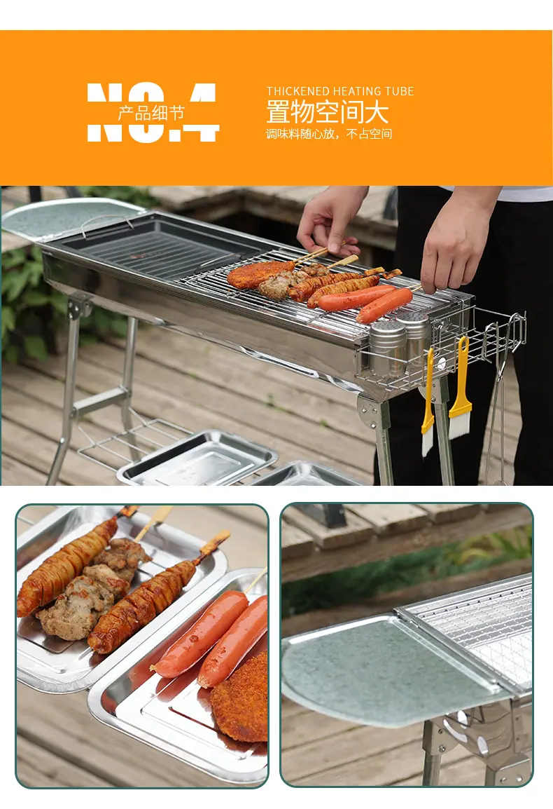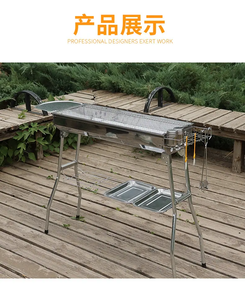 Grelha de Churrasco Doméstica Camping Grelha Grande a Carvão Suporte para Carne Exterior Transfronteiriça Dobrável Portátil Aço Inoxidável Suporte para Churrasco