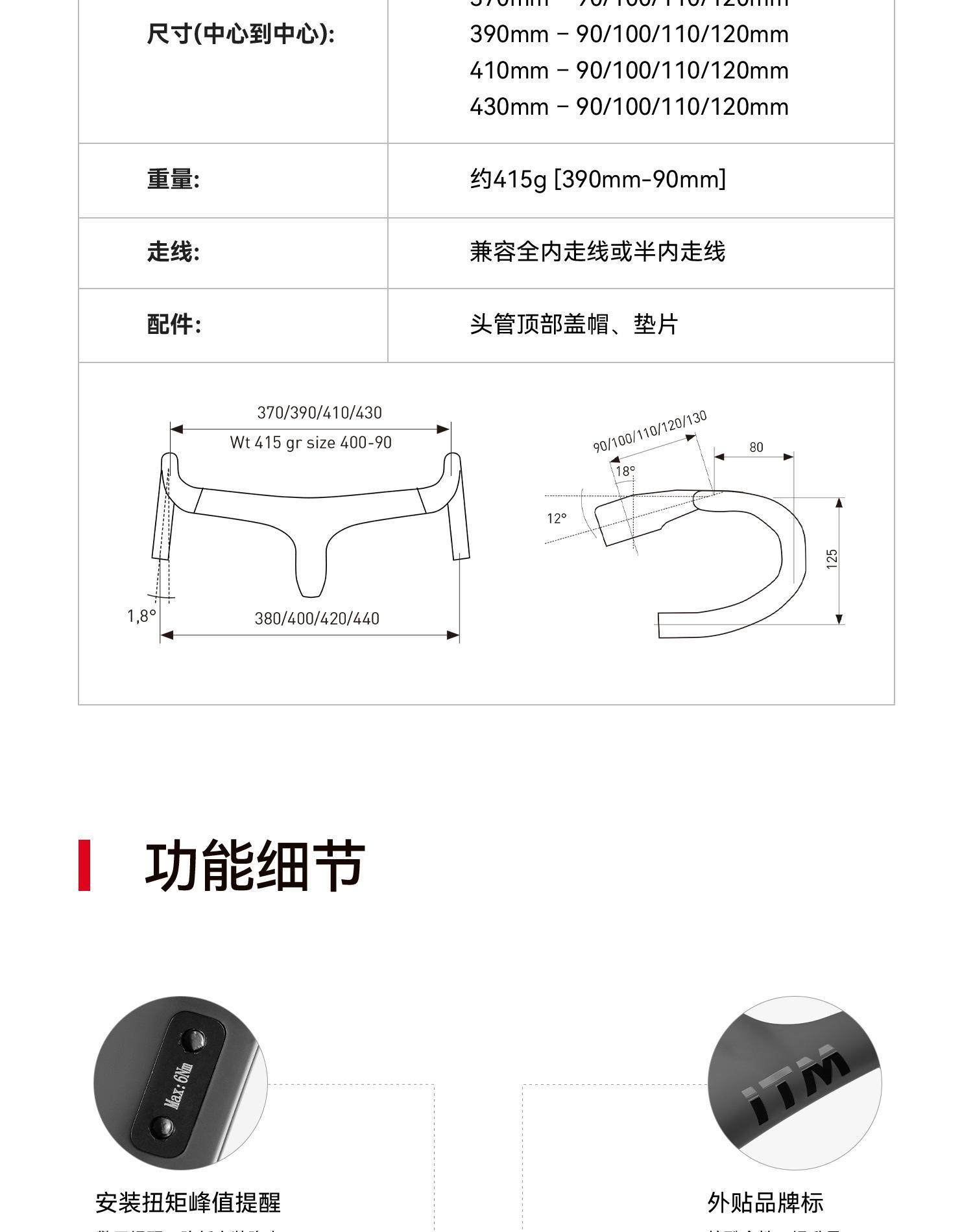 Itália Guidão Integrado de Fibra de Carbono ITM Bicicleta de Estrada Guidão Drop Bar Aerodinâmico Roteamento Interno de Cabos Guidão de Corrida Leve