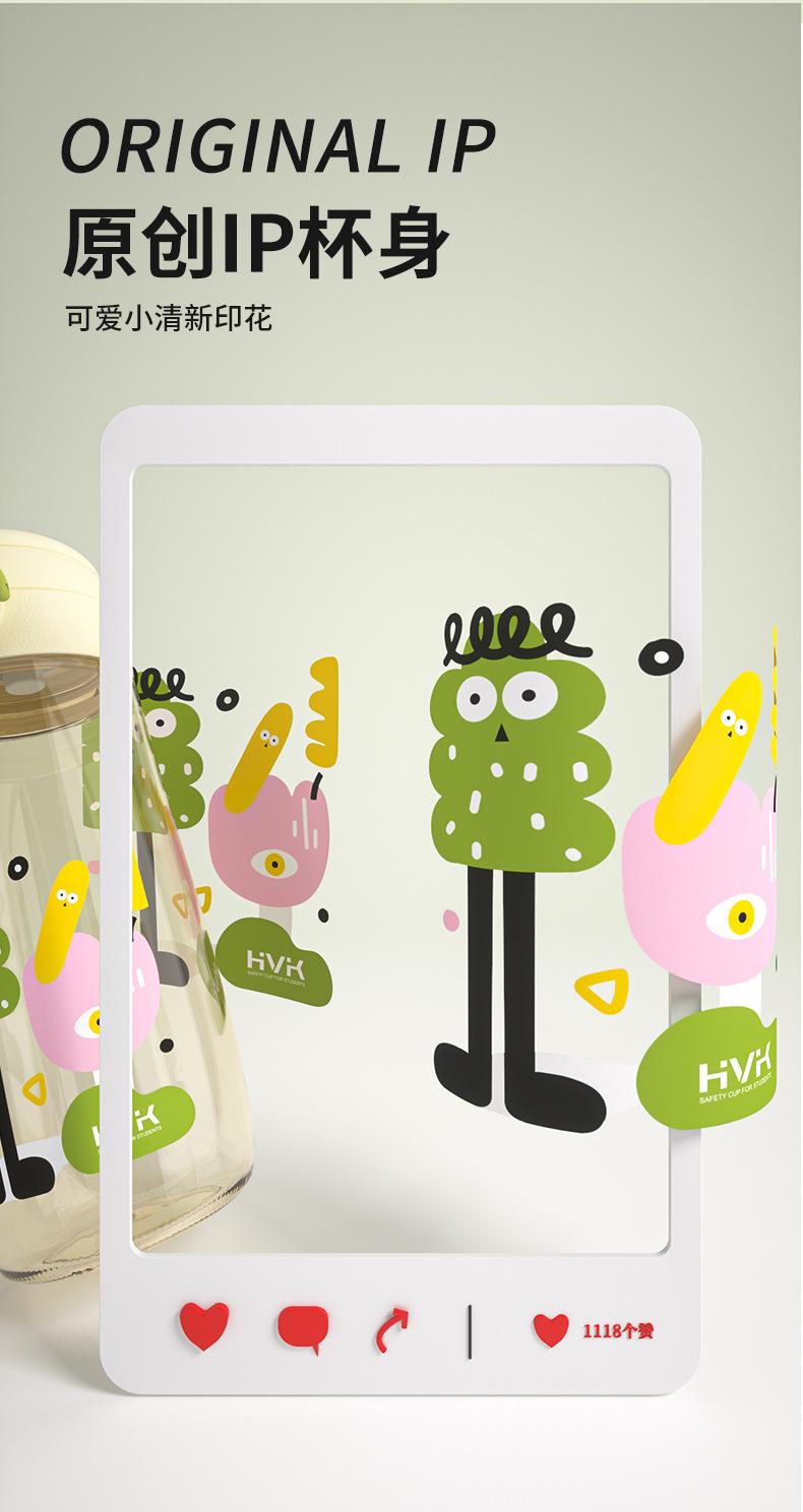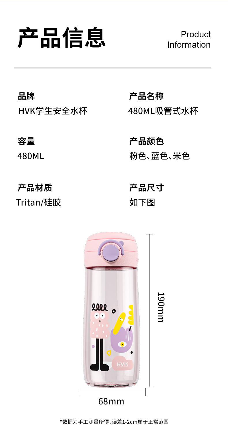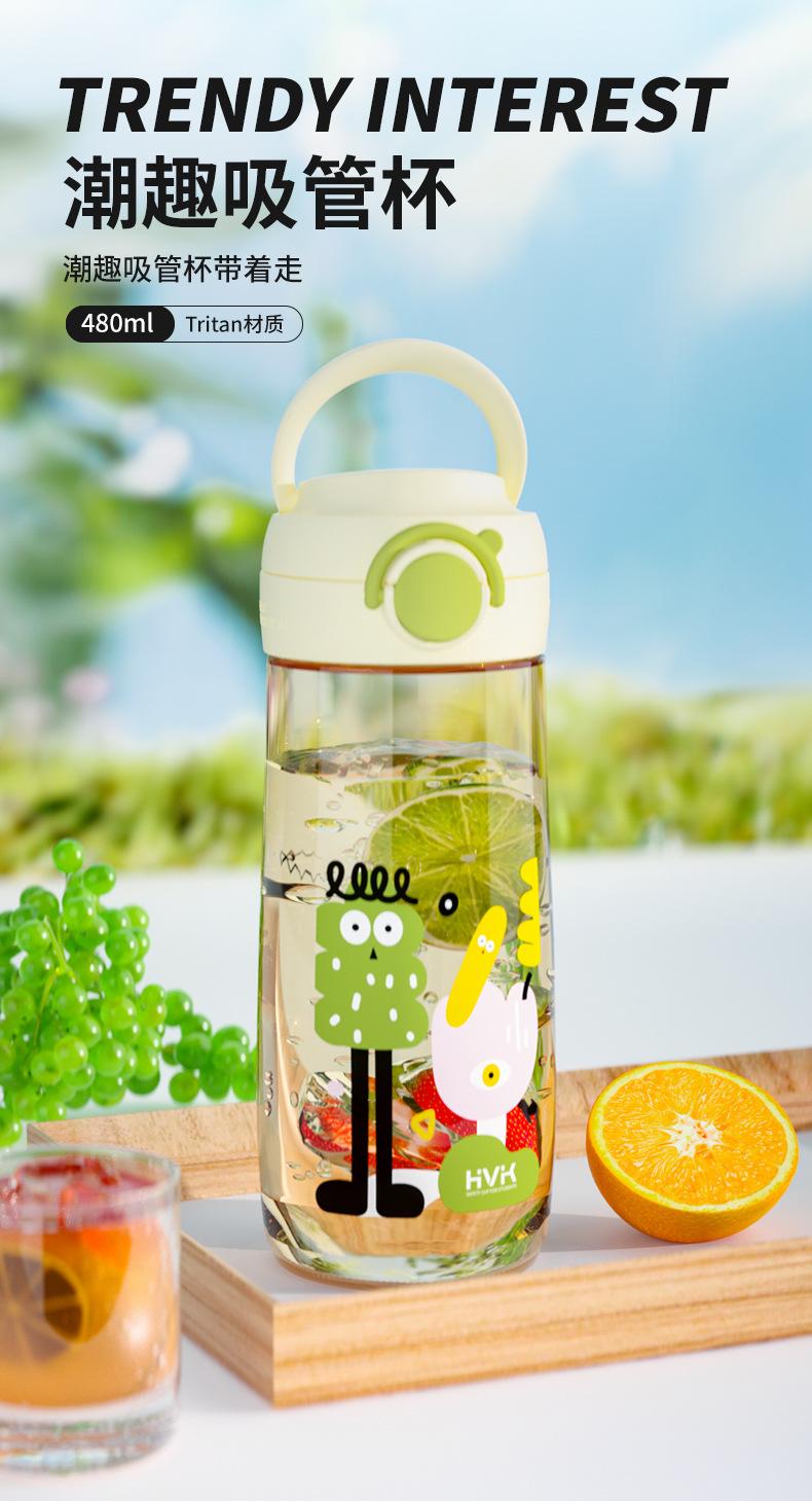Copo de palha HVK copo de água para estudantes do sexo masculino e feminino tritan grande capacidade escala com copo portátil