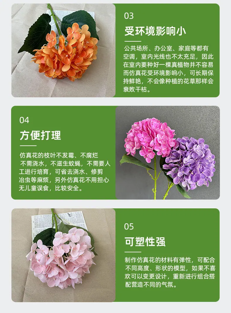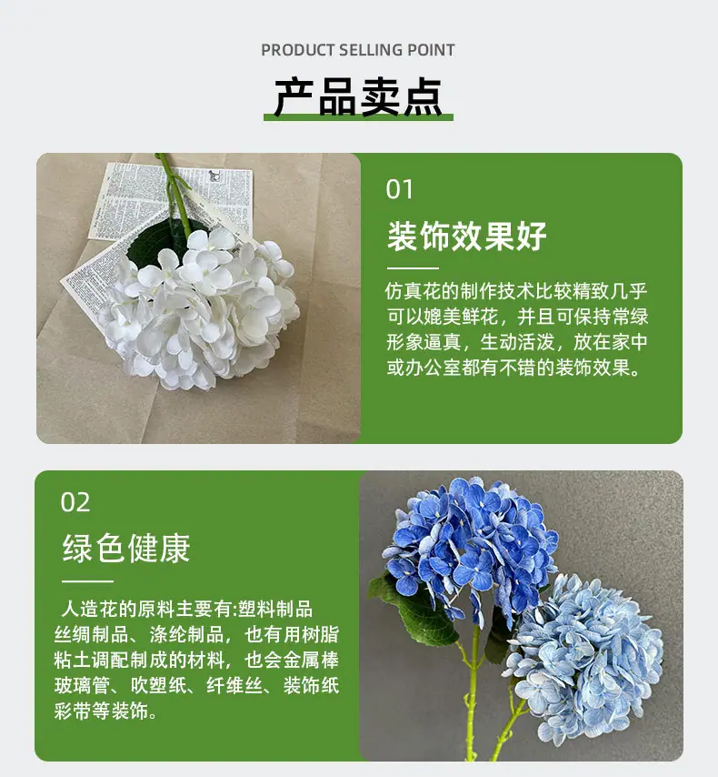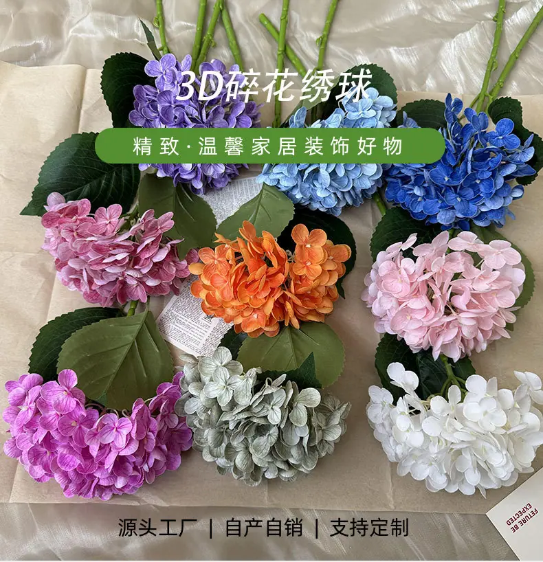 Novo hortênsia floral 3D flor decorativa para móveis domésticos de interior casamento adereços para sessão de fotos de casamento flor falsa flor artificial