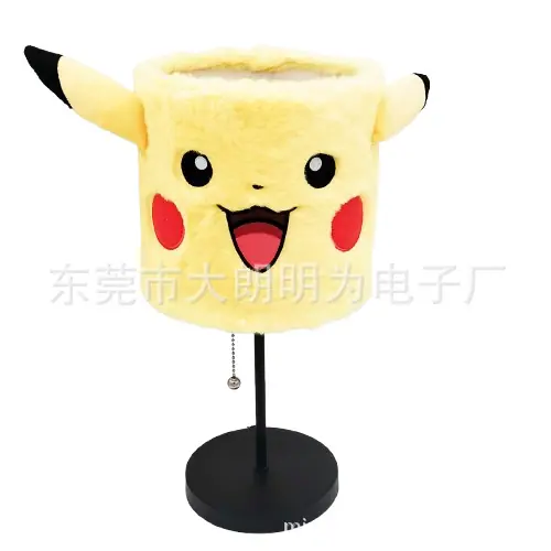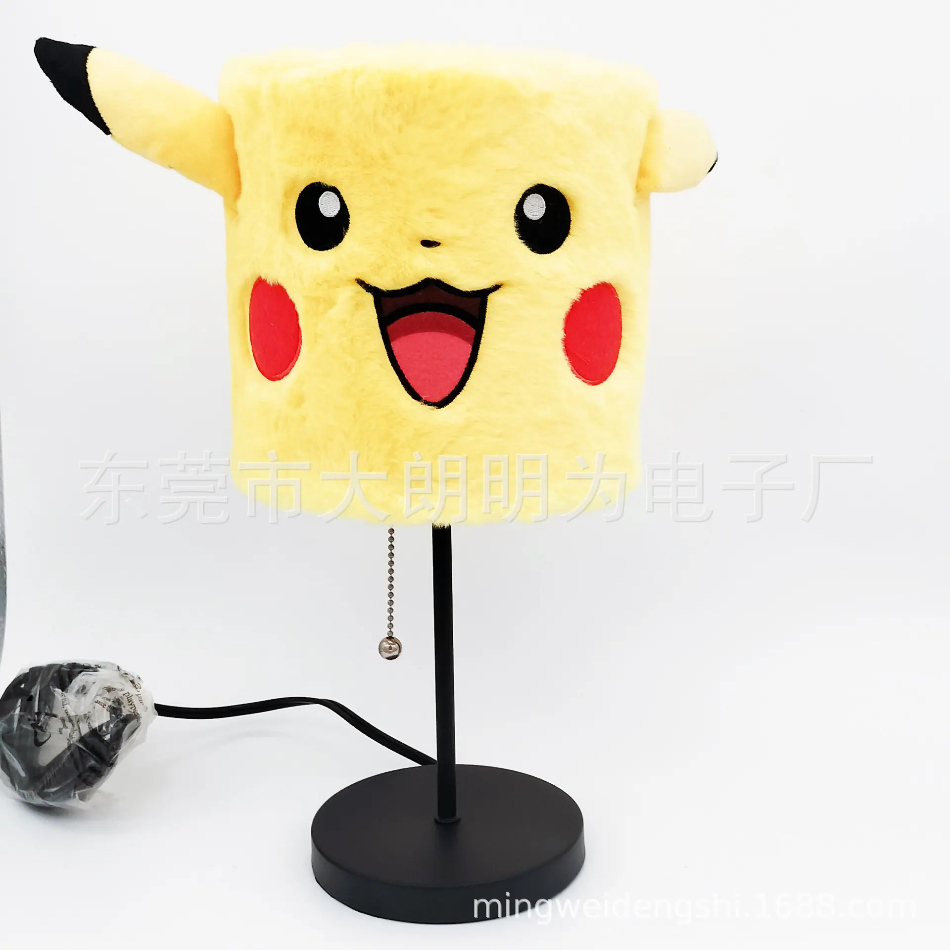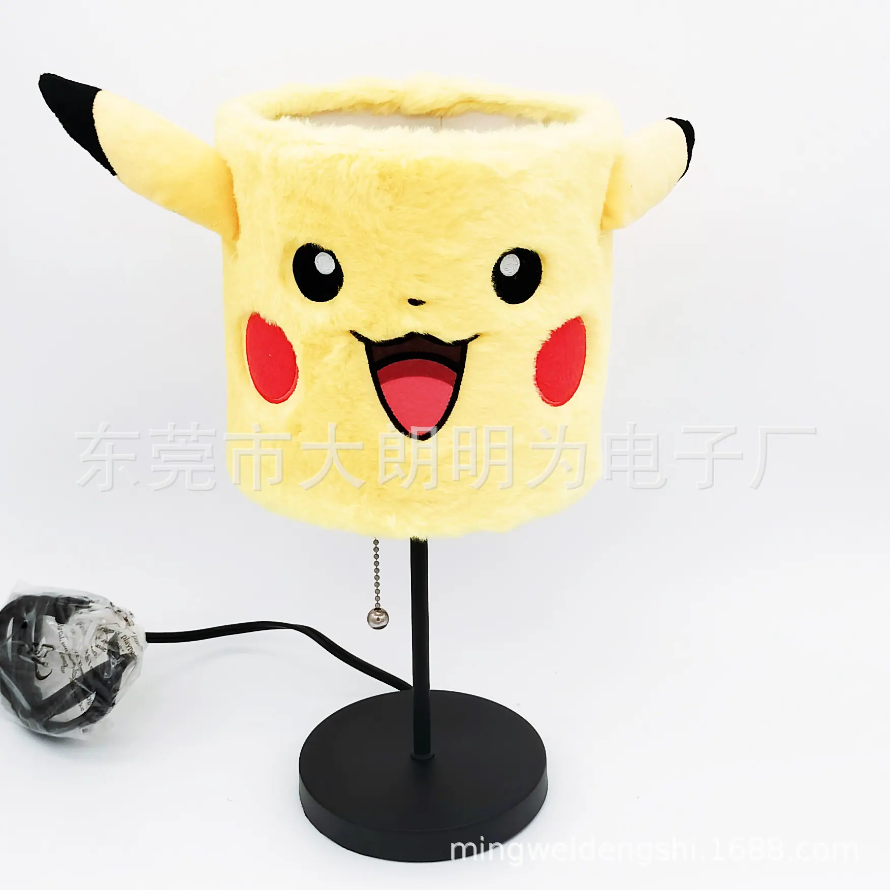 Bordado Desenho Pikachu Cúpula Abajur Quarto Cômoda Mesa de Cabeceira Sono LED Atmosfera Iluminação Decorativa Lâmpada de Mesa
