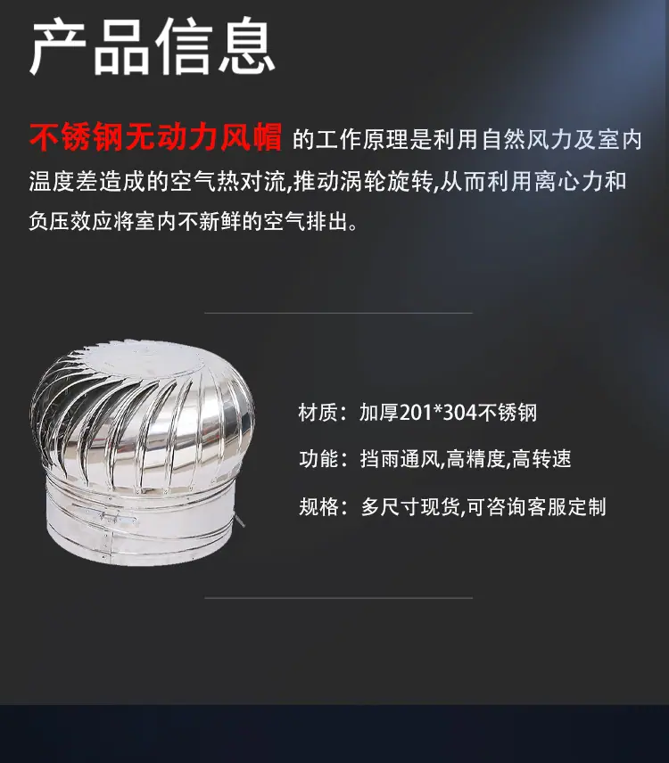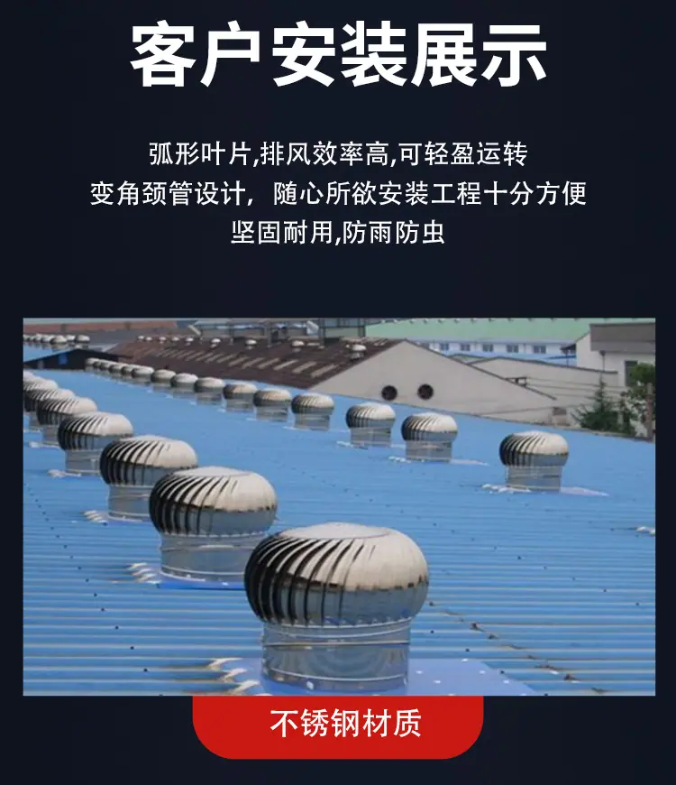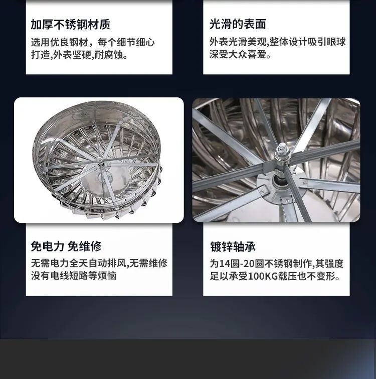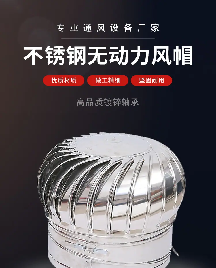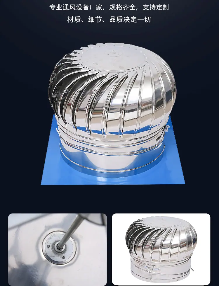 Ventilador eólico de aço inoxidável 304 sem motor para telhado, fábrica, chaminé de exaustão de pocilga, coifa de ventilação
