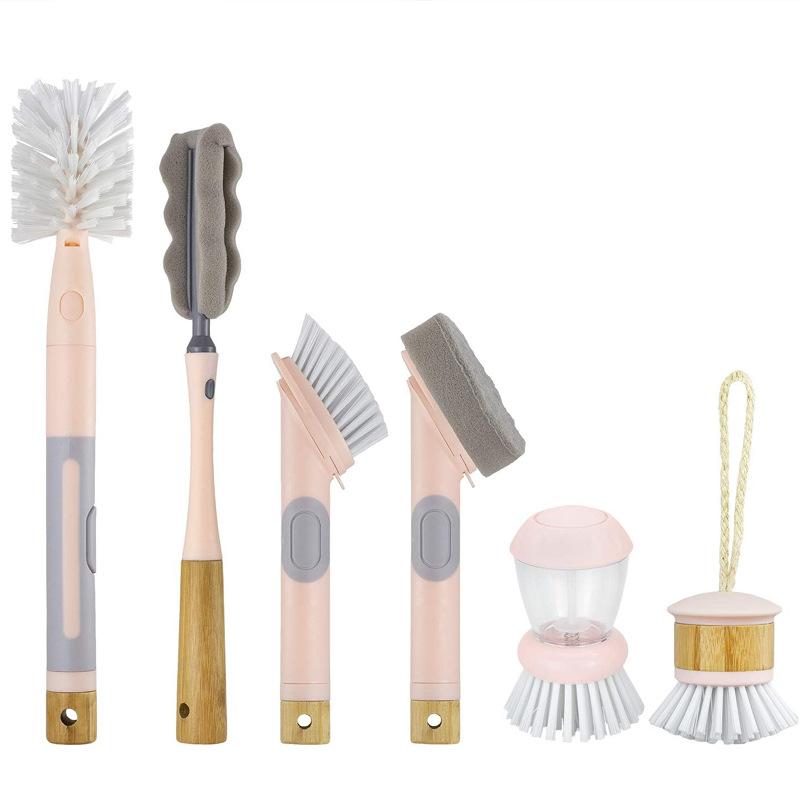 Compre Escova de lavar copos de bambu com cabo longo multifuncional doméstica escova de lavar mamadeira escova para copo de água limpeza de camada dupla escova de esponja para descontaminação no atacado no Joom.pro