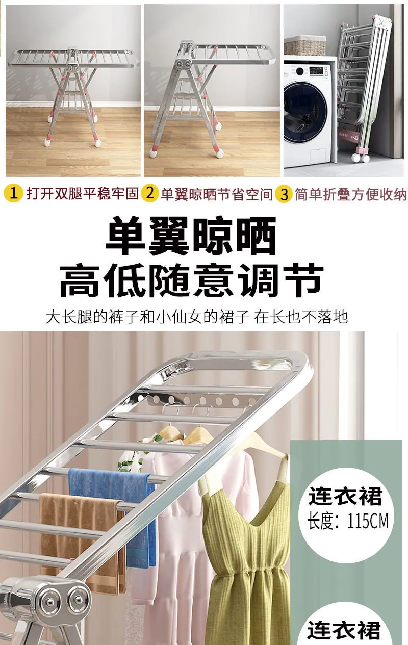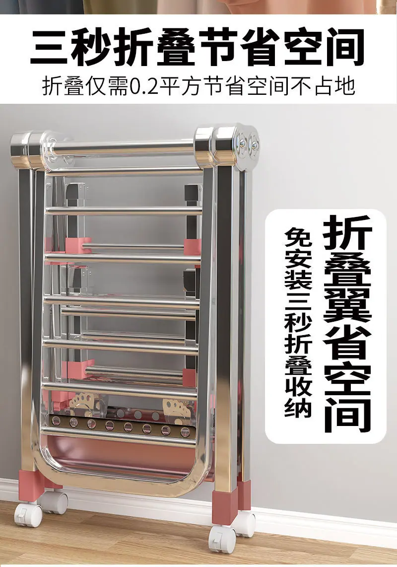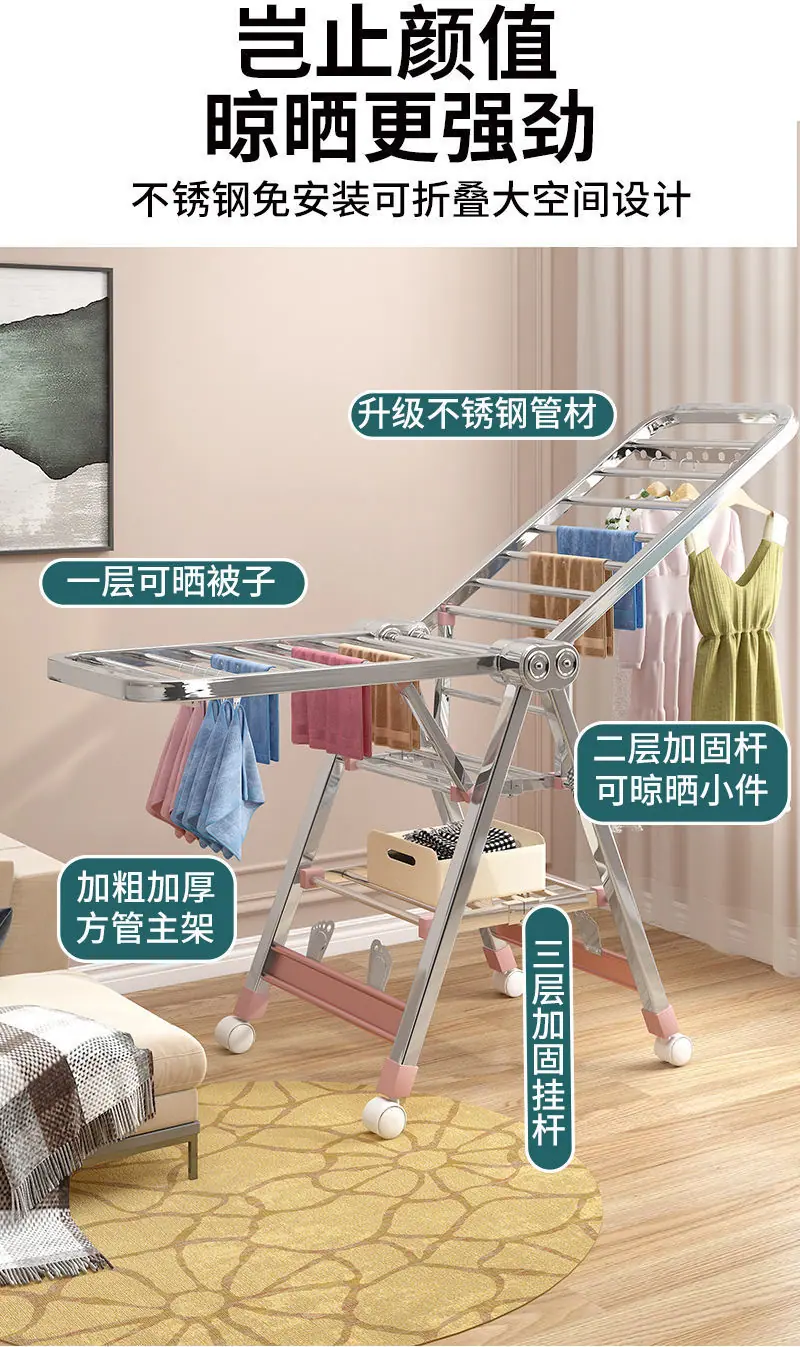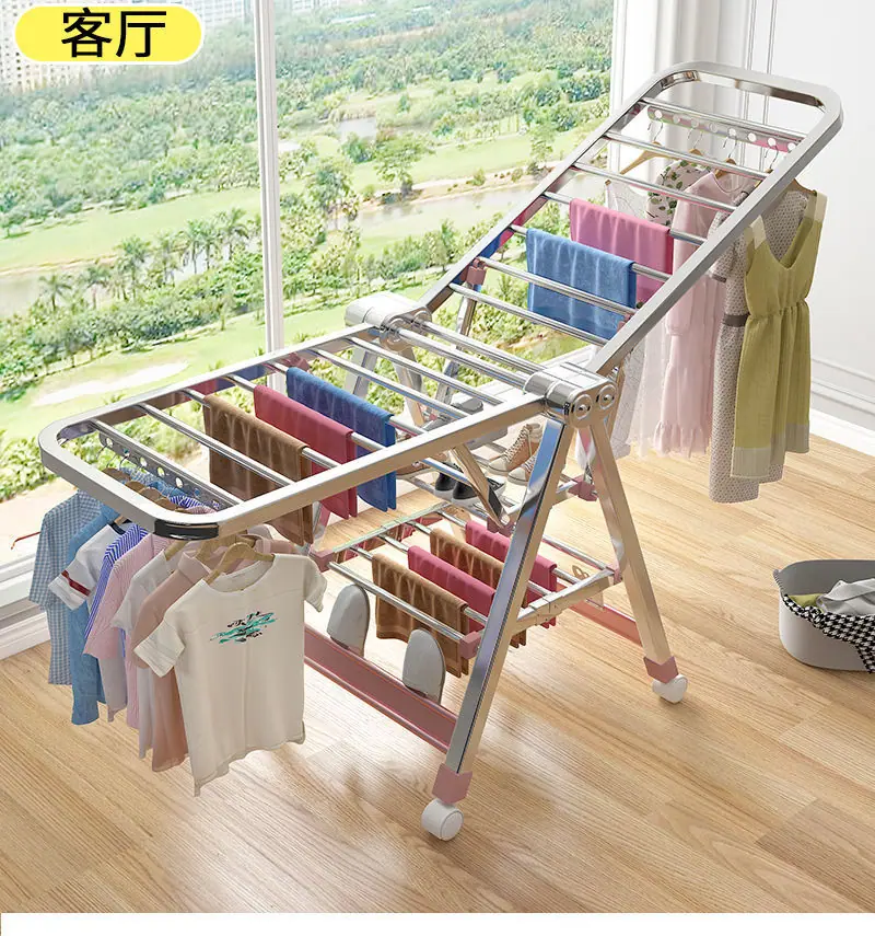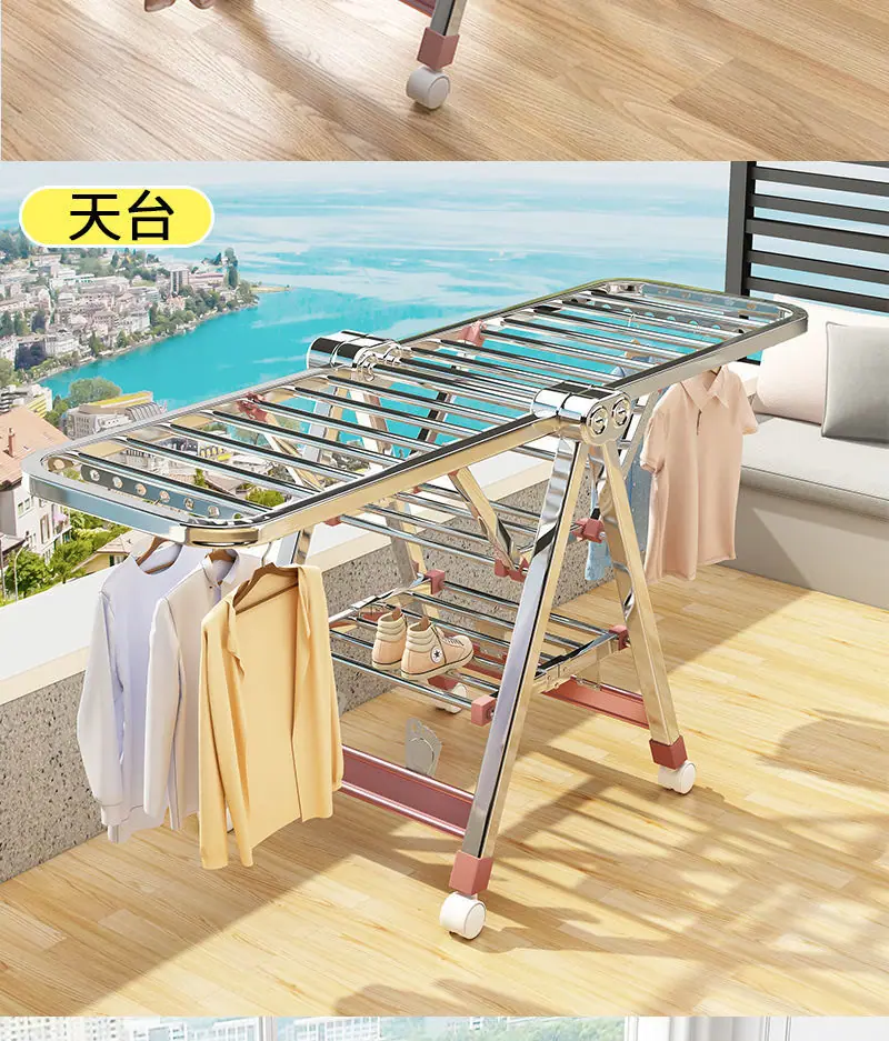 Estendal de aço inoxidável para secar piso dobrável quarto varanda estendal de secagem doméstico para bebês estendal de secagem colcha artefato