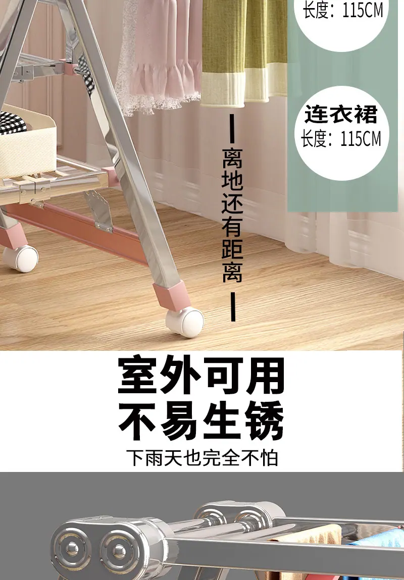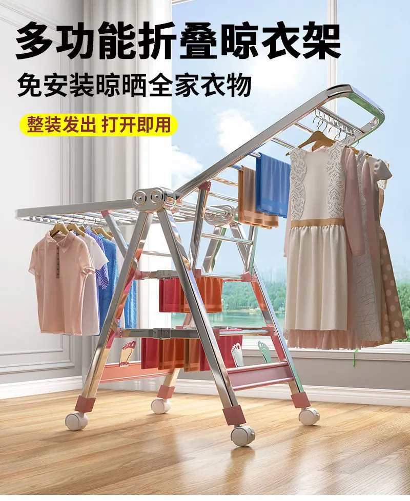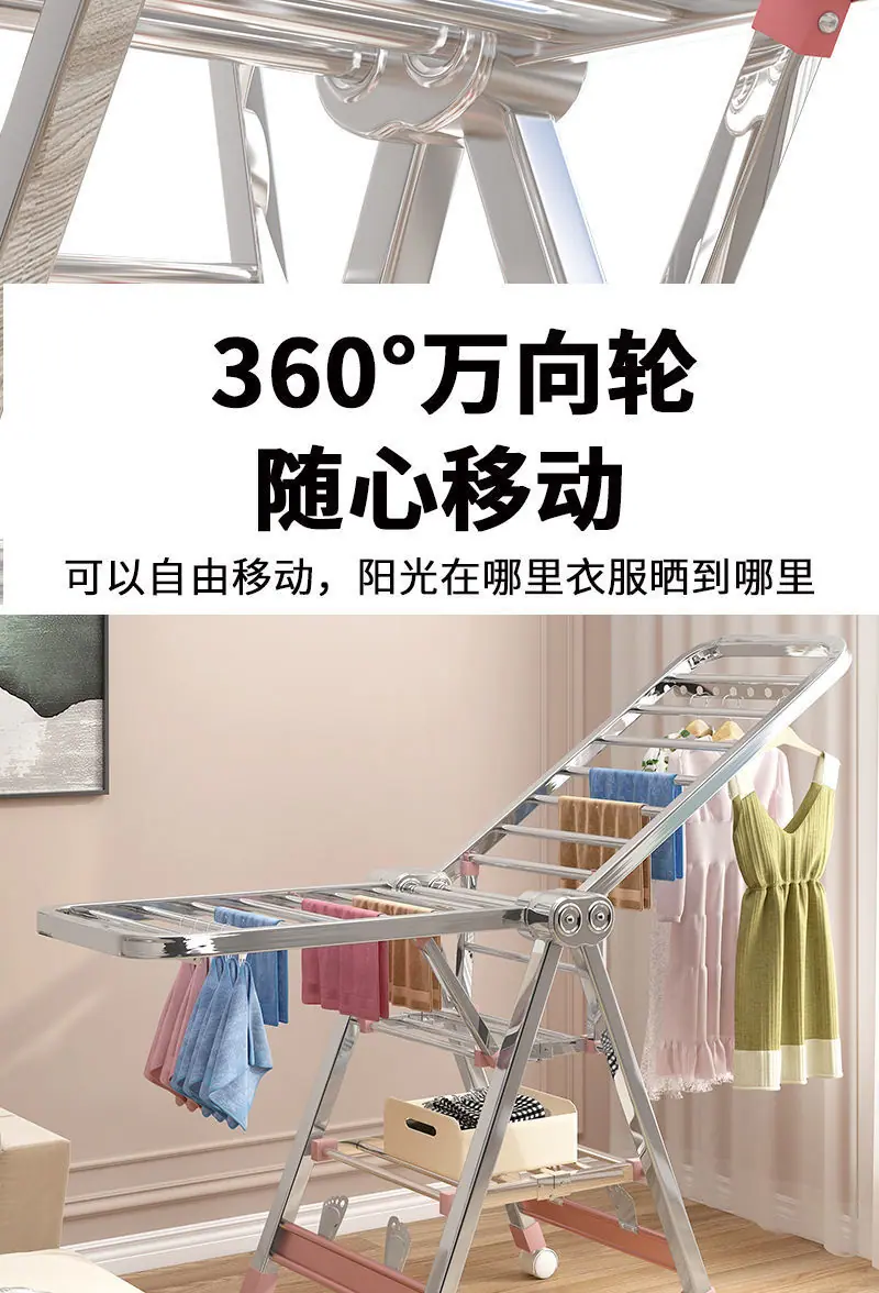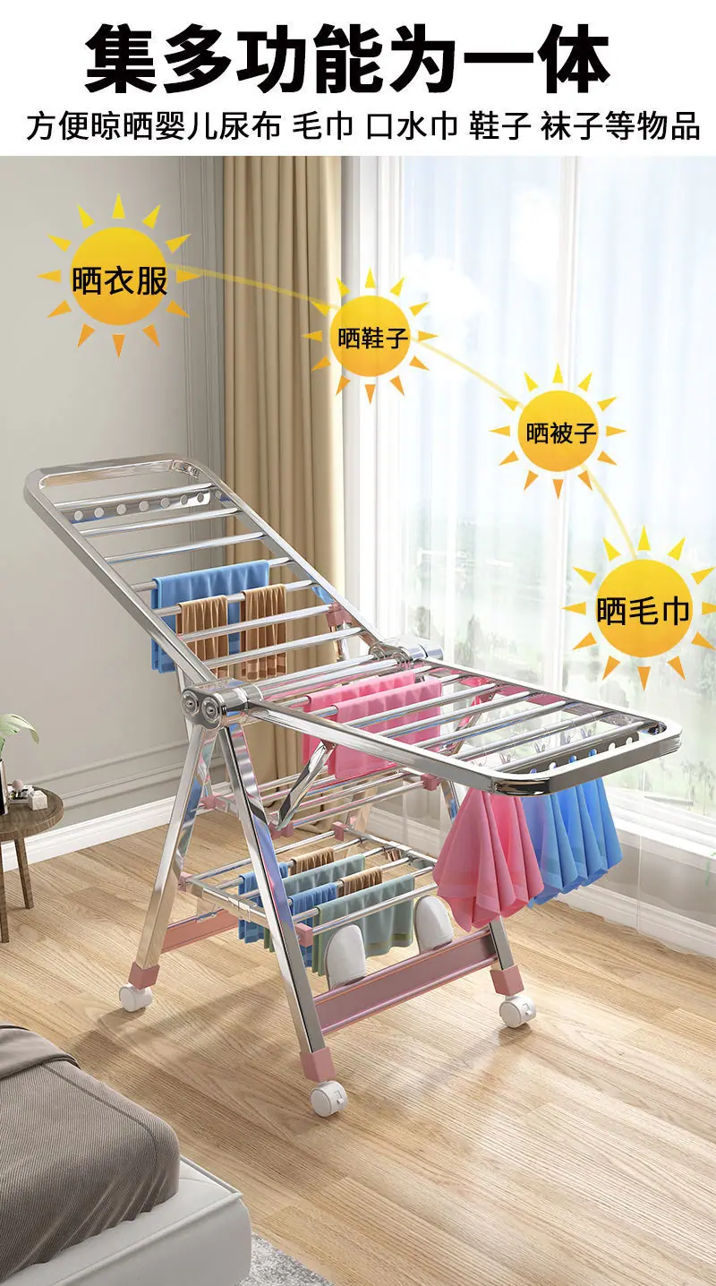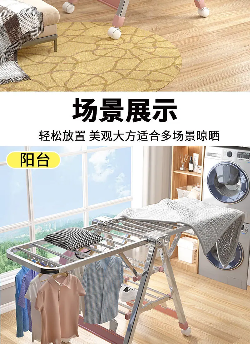 Estendal de aço inoxidável para secar piso dobrável quarto varanda estendal de secagem doméstico para bebês estendal de secagem colcha artefato