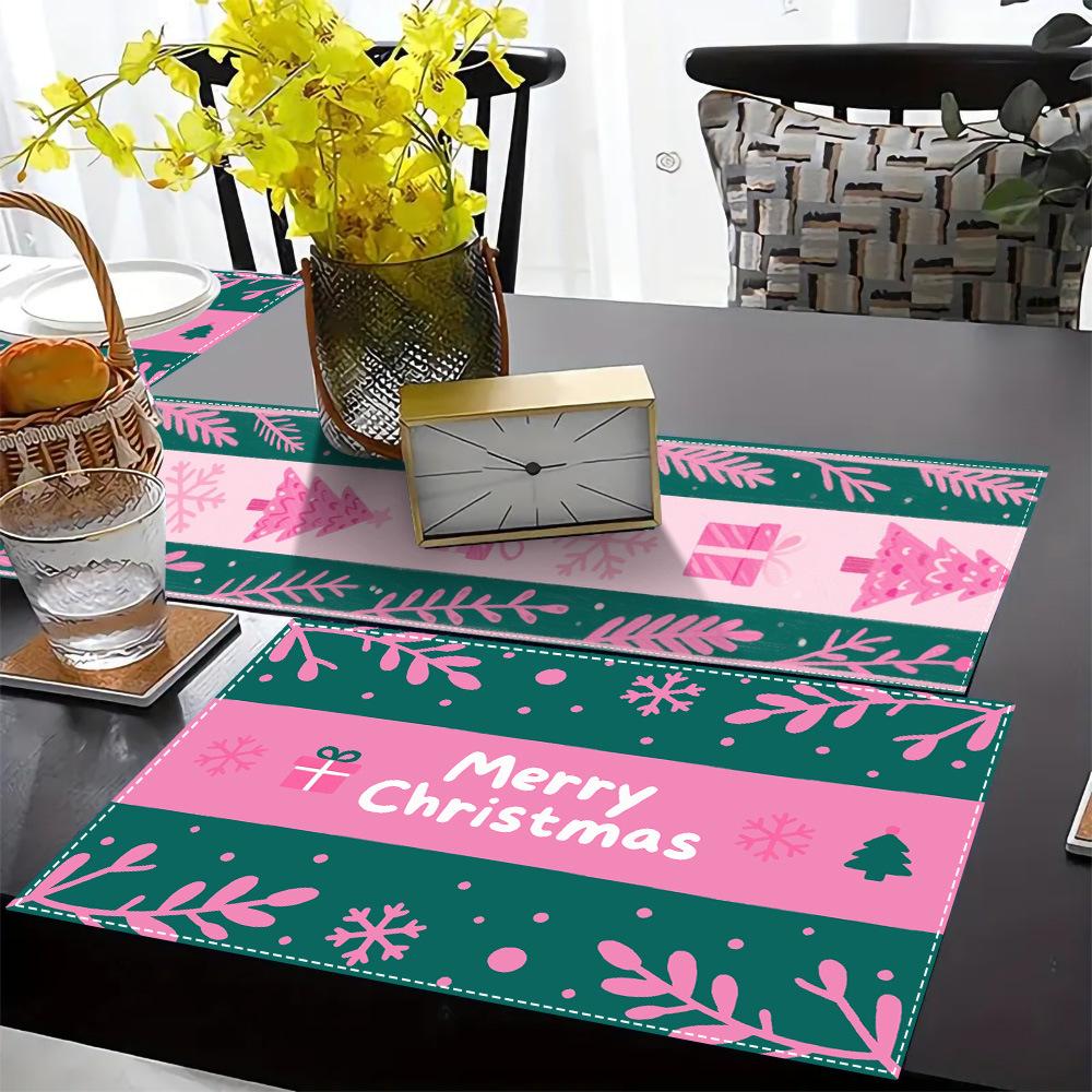 Amazon Navidad Impresión Creativa Camino de Mesa Poliéster Decoración Cocina Mesa de Comedor Mantel Pequeño Vacaciones Transfronterizas Mantel Pequeño