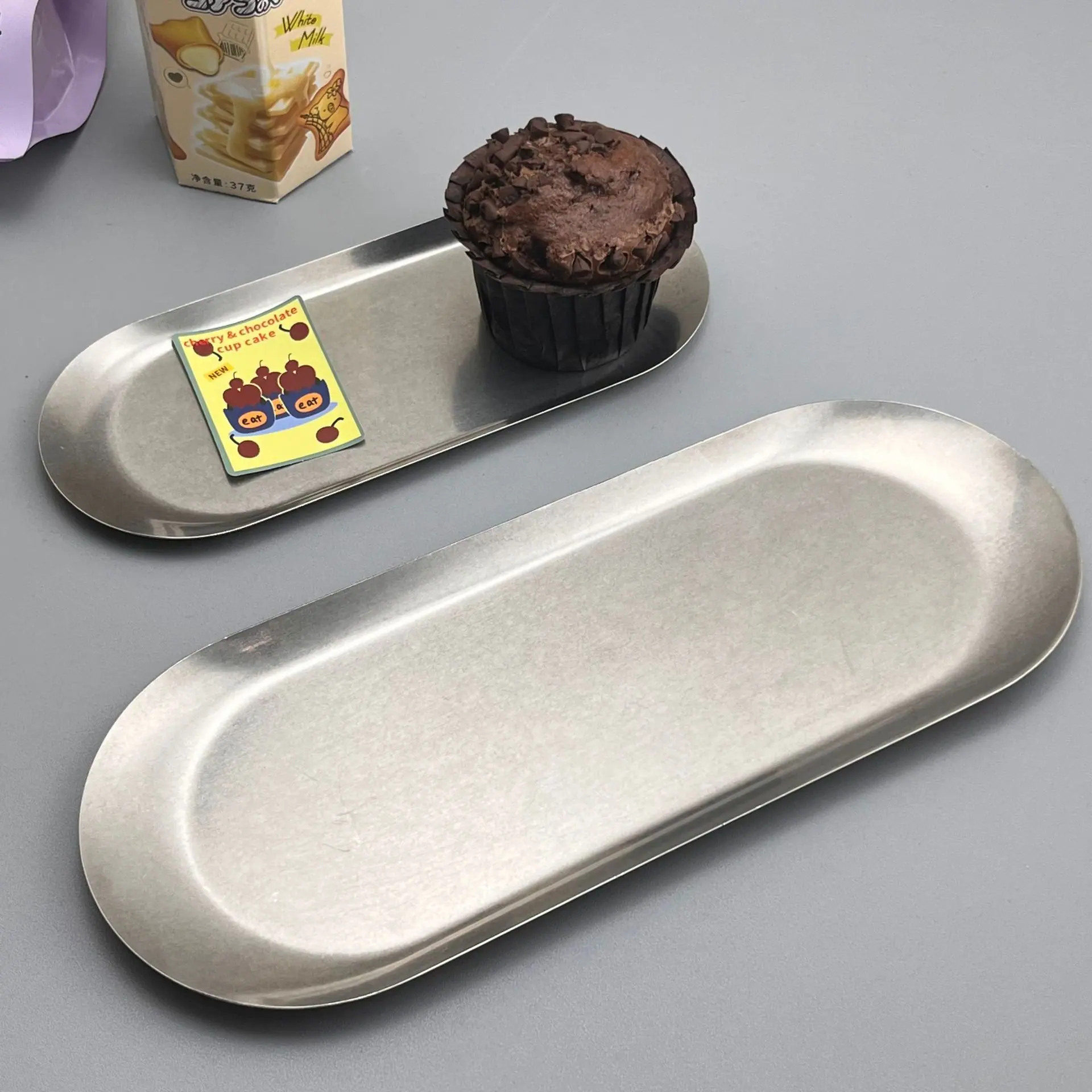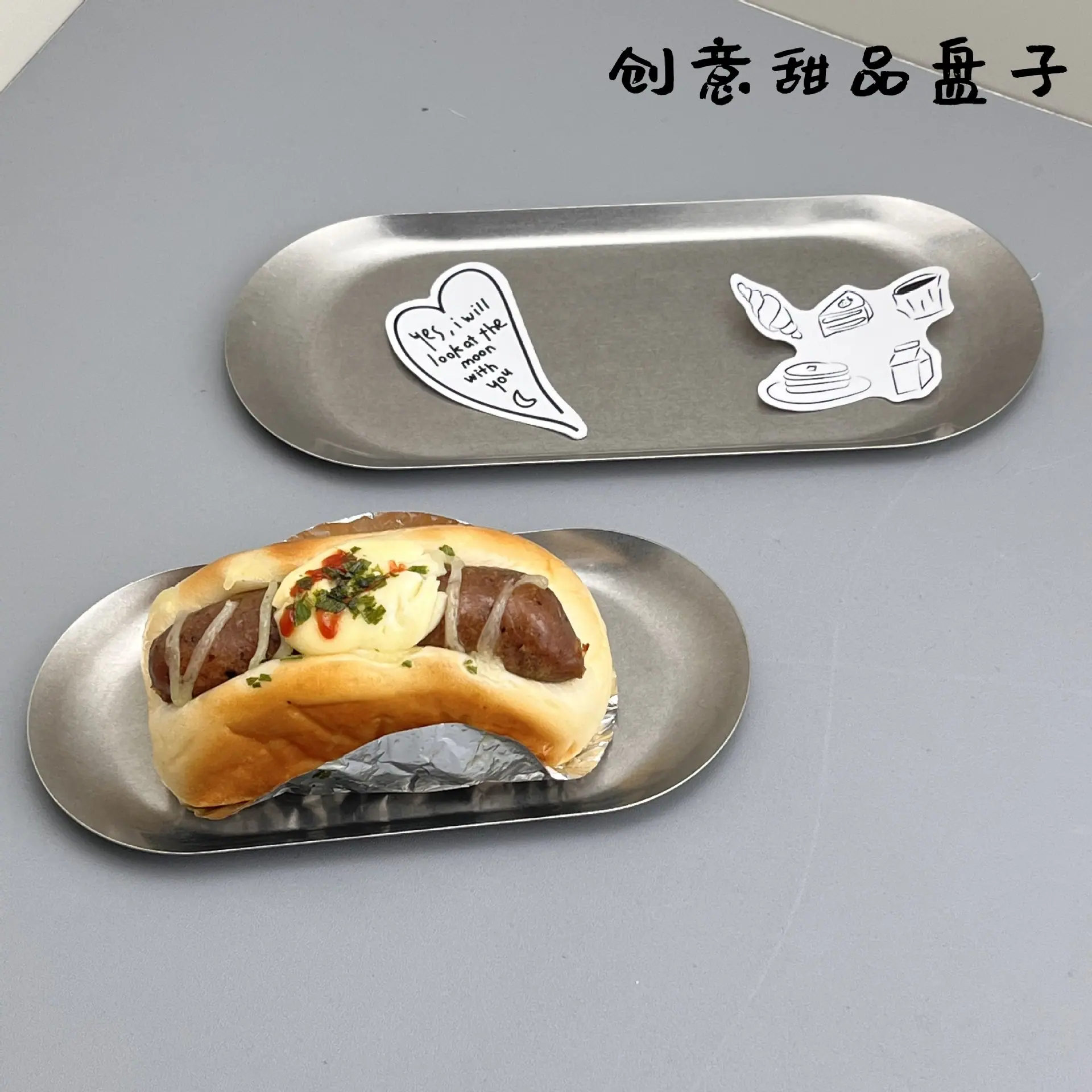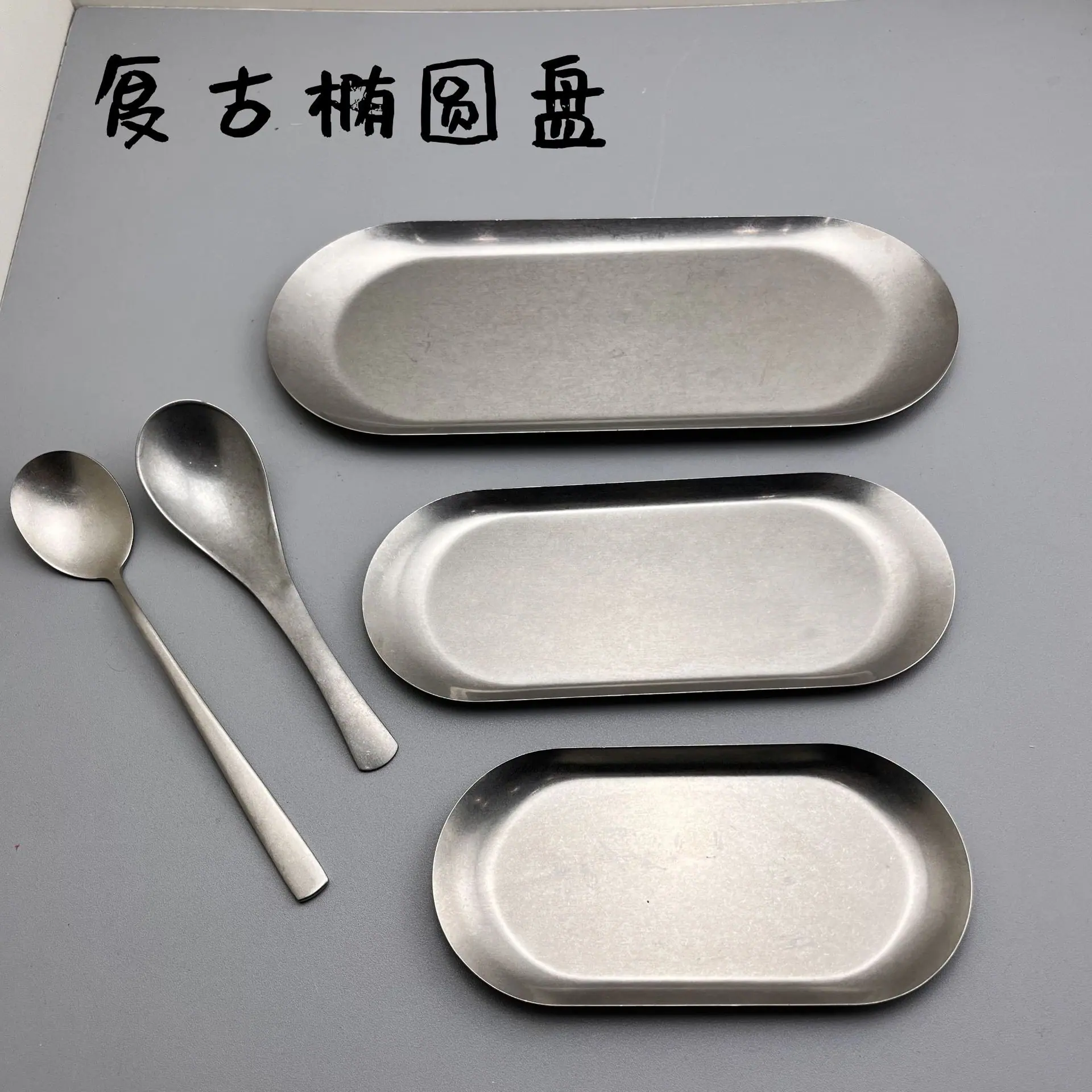 Prato Oval Retrô de Aço Inoxidável Bandeja Coreana para Sobremesa Criativa para Restaurante Bandeja para Pastelaria Toalheiro