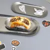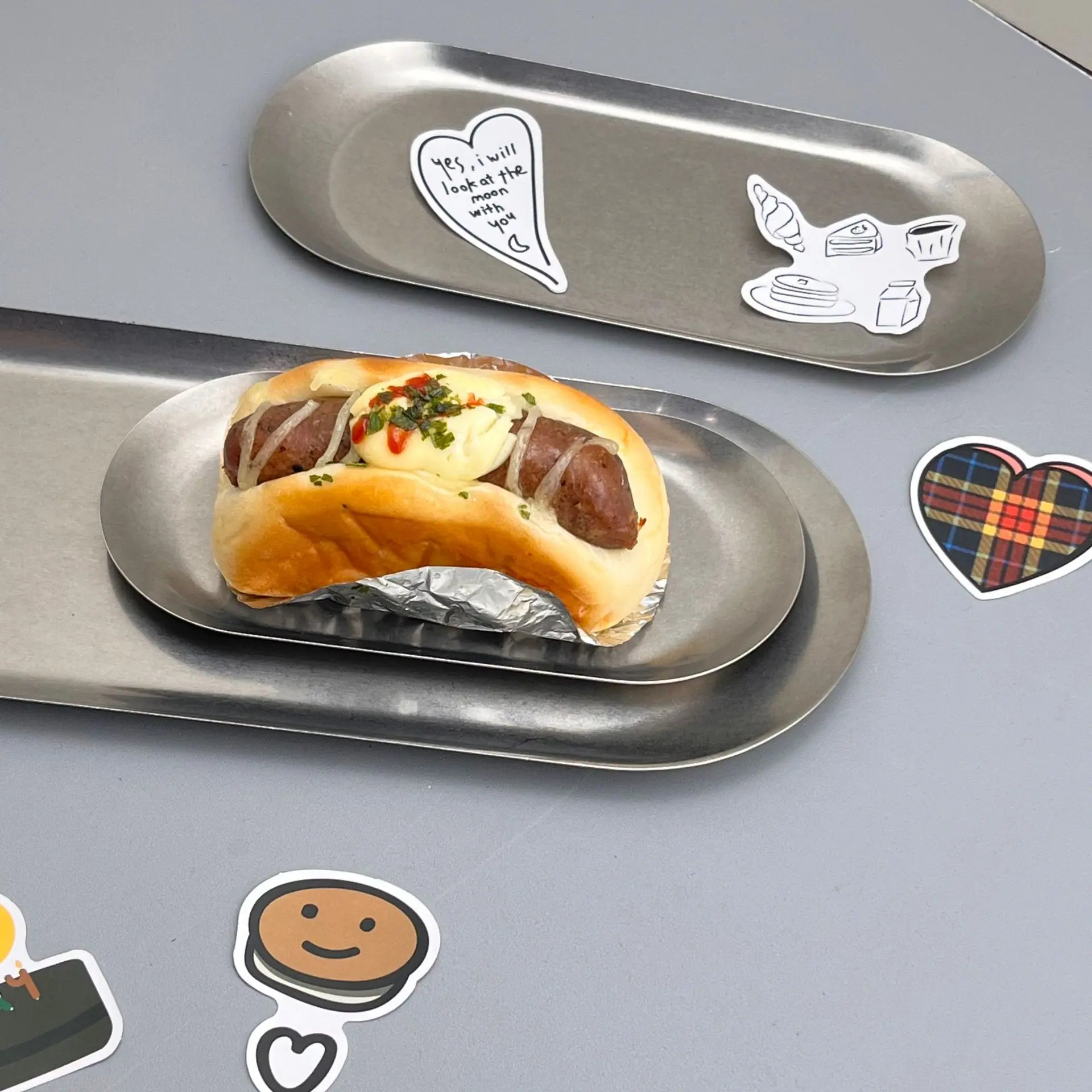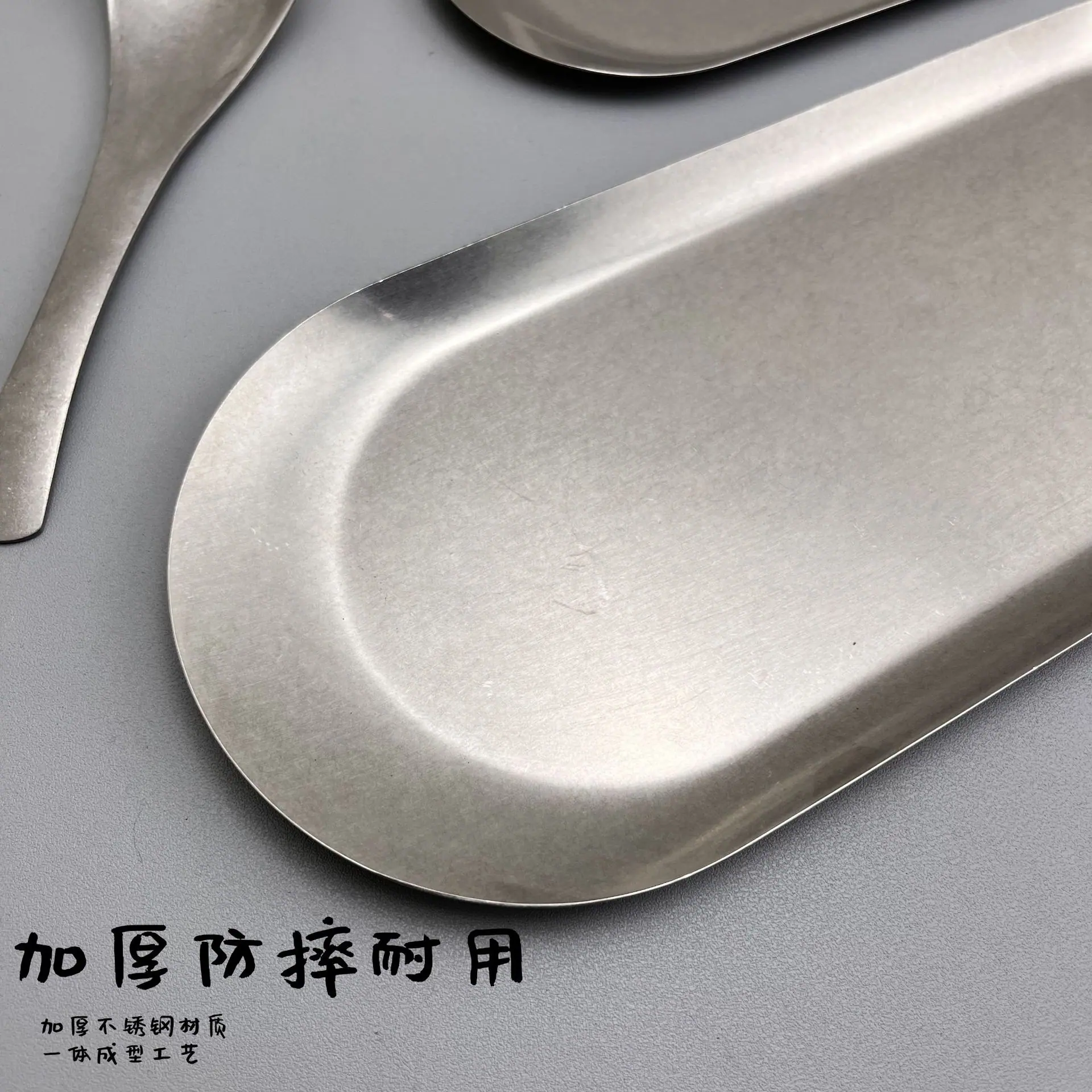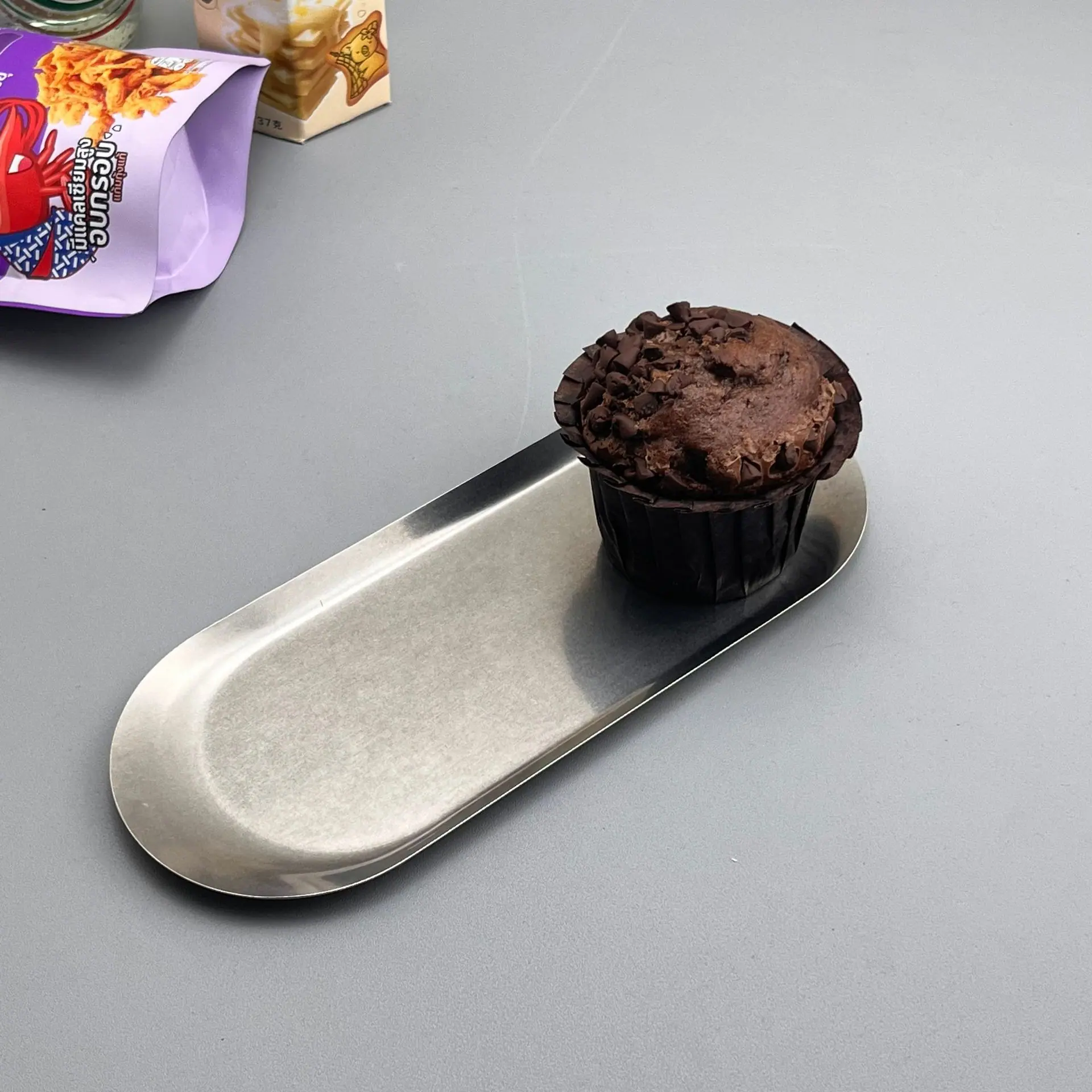 Prato Oval Retrô de Aço Inoxidável Bandeja Coreana para Sobremesa Criativa para Restaurante Bandeja para Pastelaria Toalheiro