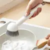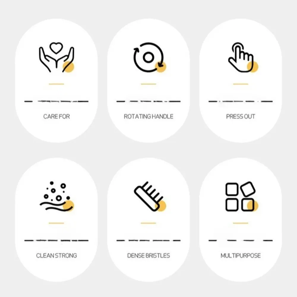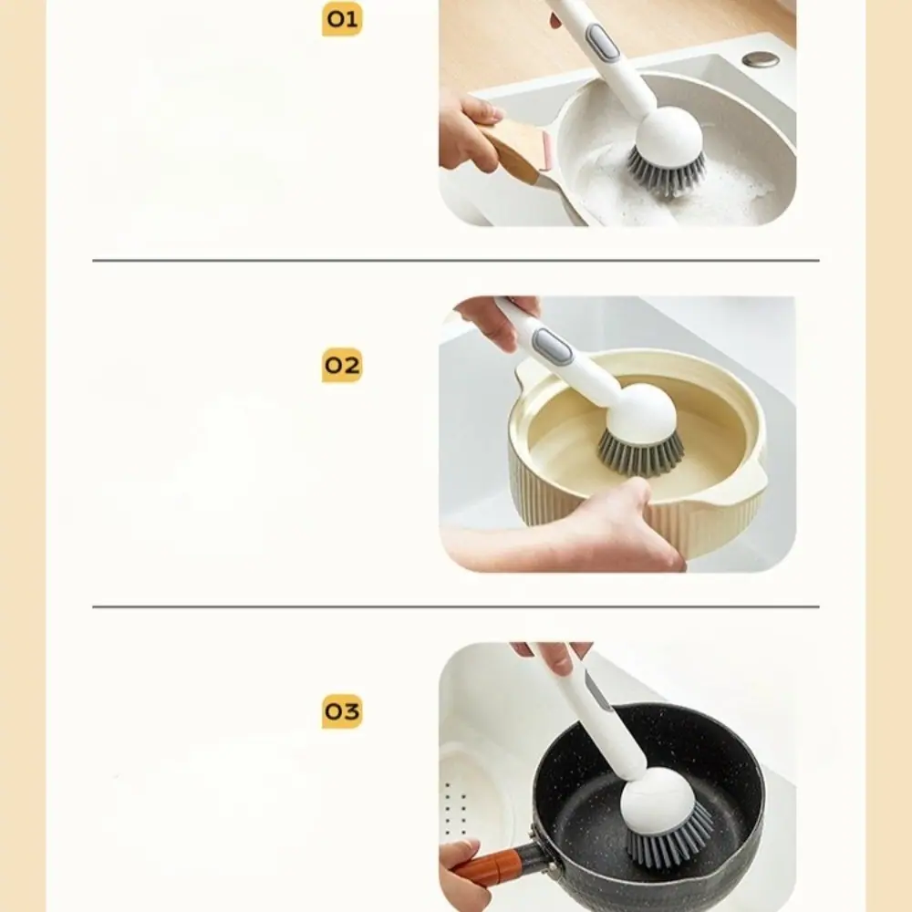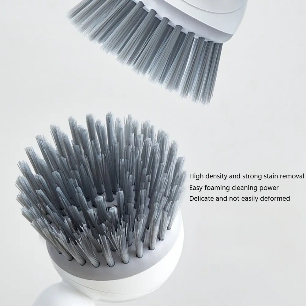 A cabeça da escova gira livremente, permitindo que as cerdas se adaptem às curvas e contornos de panelas e tigelas para uma esfregação mais eficaz com menos esforço.