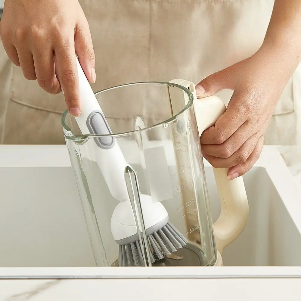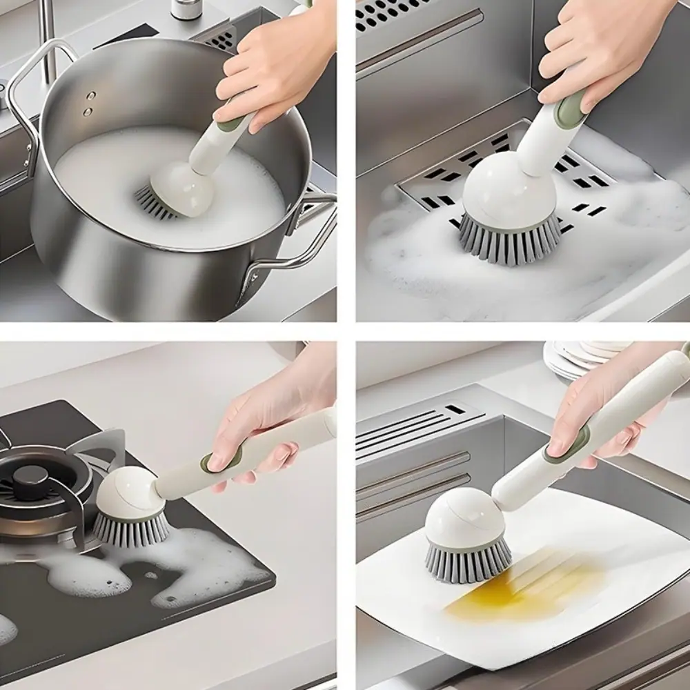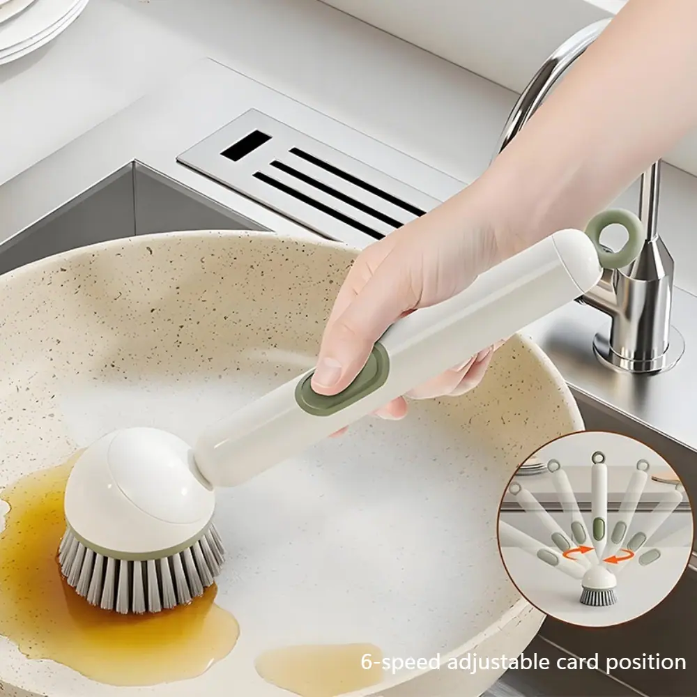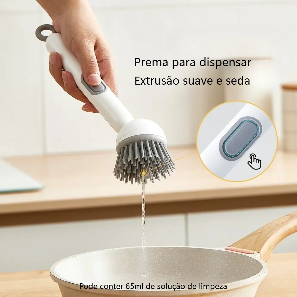 Ajuste a firmeza das cerdas para limpeza leve ou esfregação agressiva de alimentos grudados.