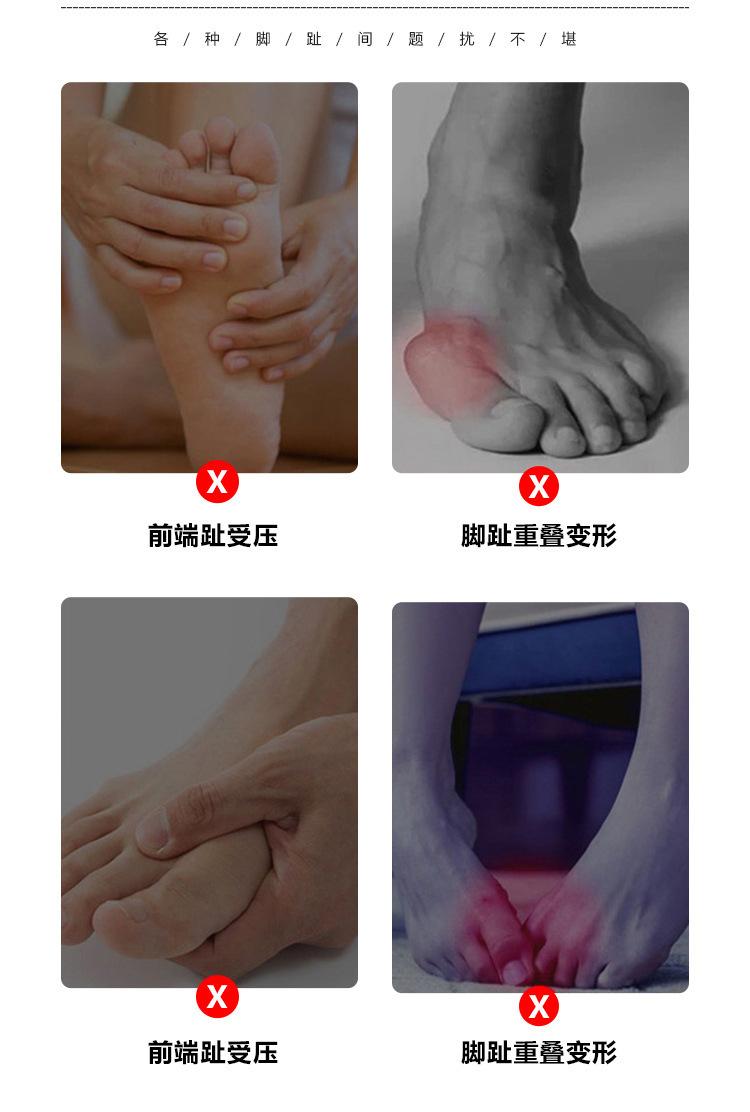 Soft material, suitable for daily wear; by separating the big toe from the other toes, it reduces pressure.