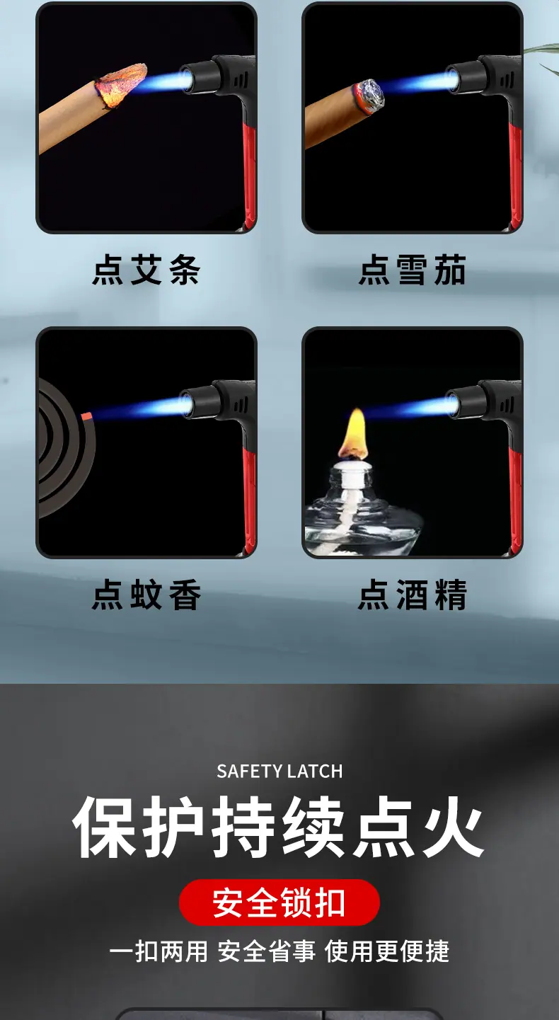 Isqueiro Maçarico à Prova de Vento Isqueiro Inflável Maçarico de Solda Moxabustão Especial Acendimento de Charuto Cabo Longo Arma de Fogo Durável