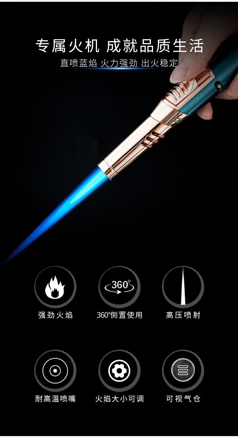 Isqueiro Simples à Prova de Vento Moxabustão Durável Luz Luxo Charuto Ouro e Prata Três Vias Inflável Arma de Fogo Externa