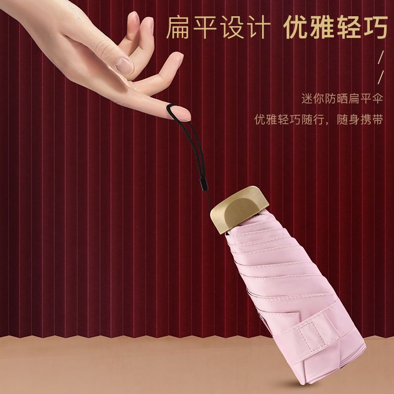 Mini guarda-sol de cinco dobras guarda-sol guarda-chuva plano de cinco dobras logotipo preto borracha protetor solar UV guarda-chuva dobrável de bolso