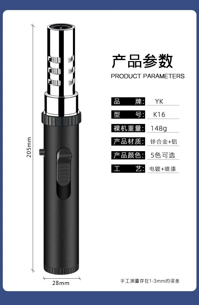 Maçarico de Solda Tipo Caneta de Alta Temperatura Gás de Injeção Direta Isqueiro à Prova de Vento K16 Inflável para Churrasco ao Ar Livre Portátil Atacado Transfronteiriço