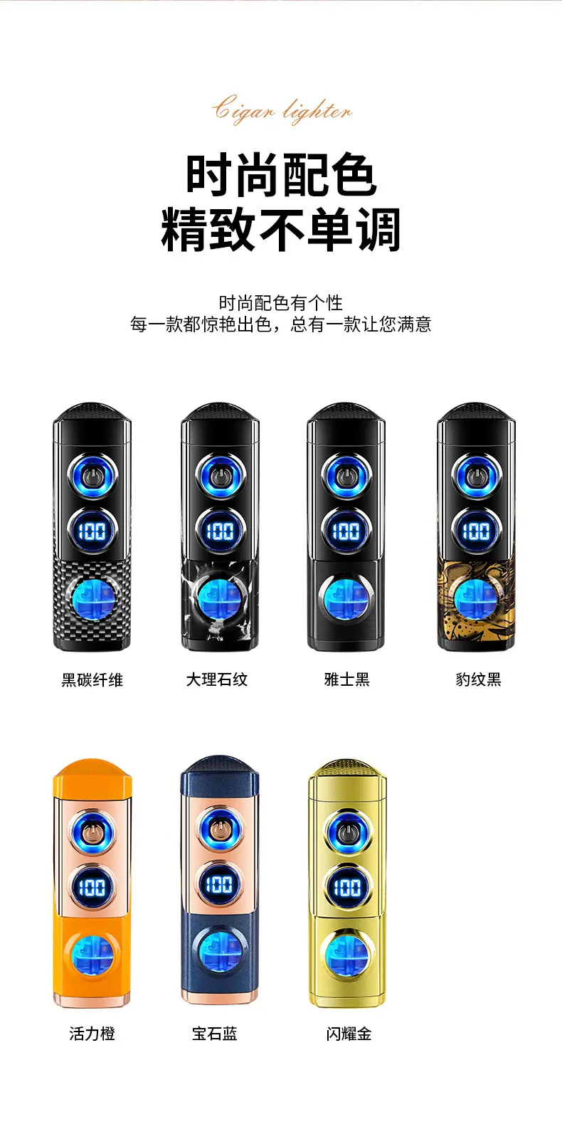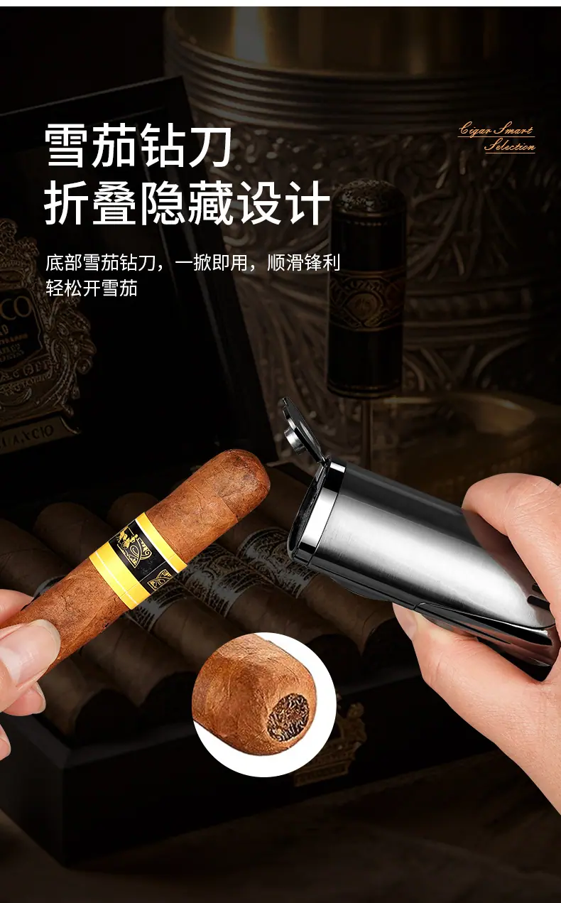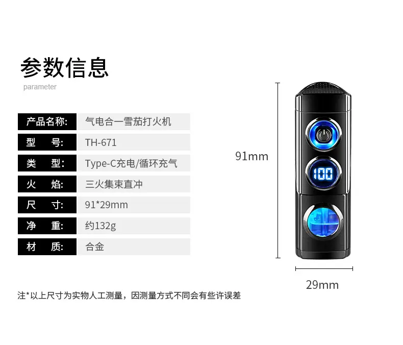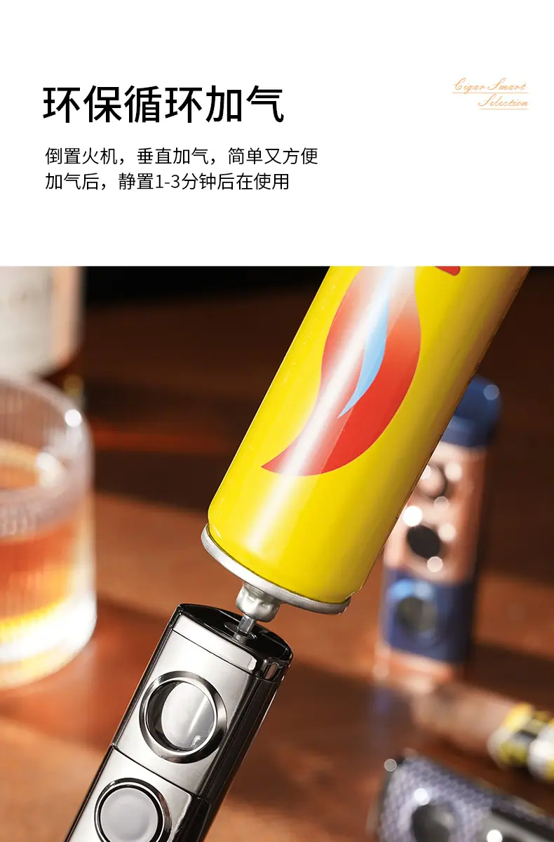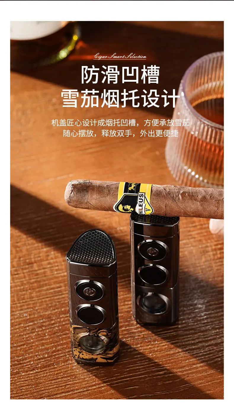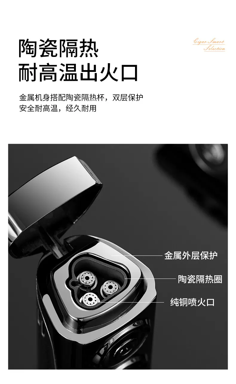 Isqueiro criativo de chama azul direta de três focos para charuto, isqueiro portátil dois em um a gás e elétrico para coleta de fogo, atacado