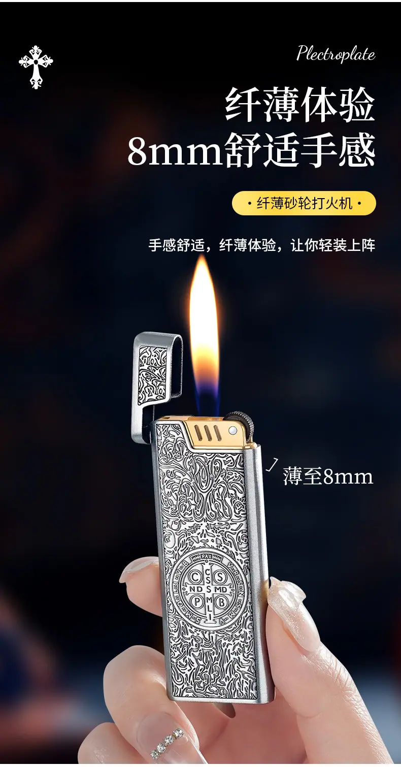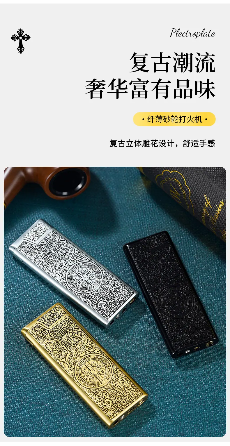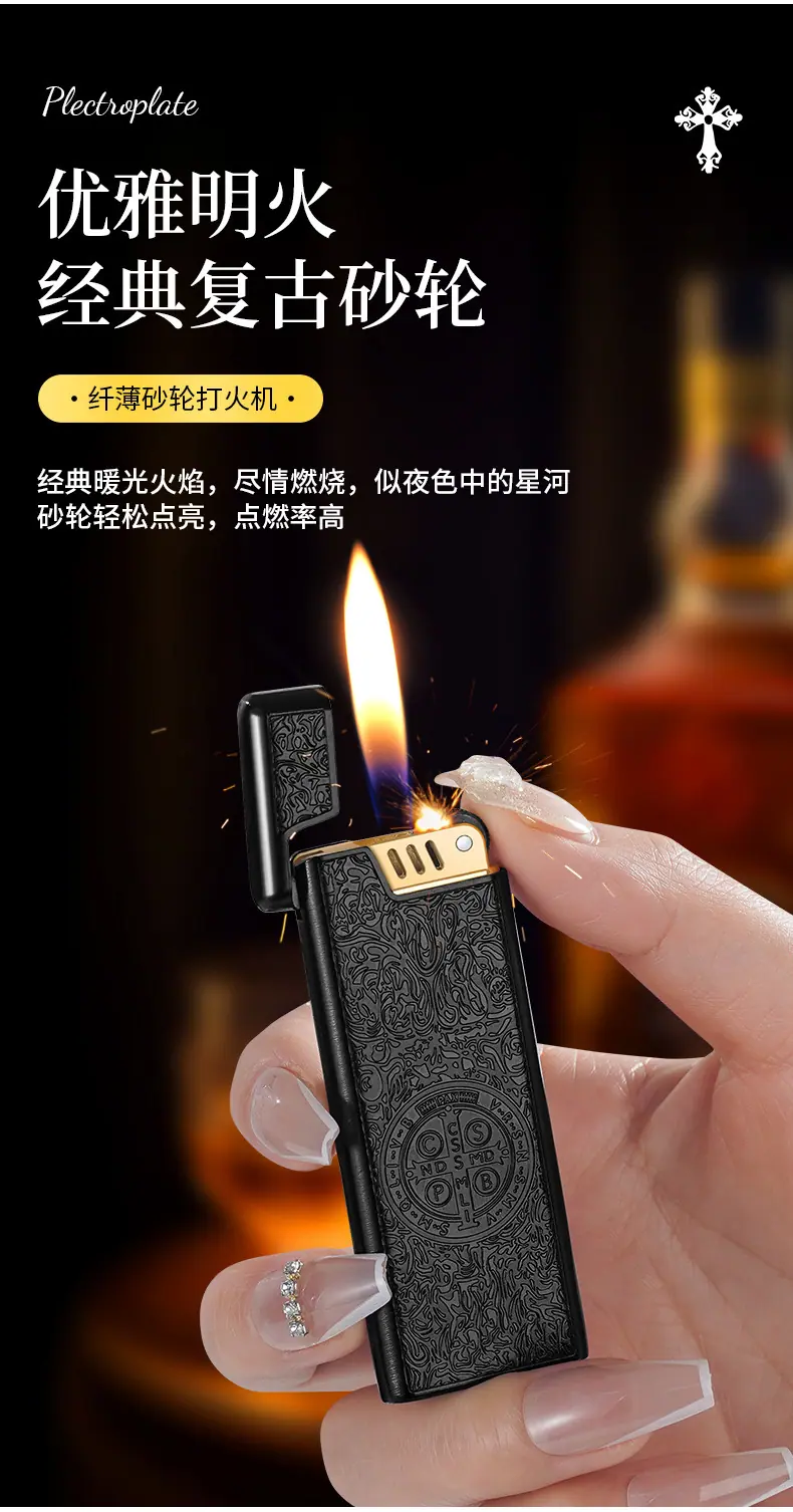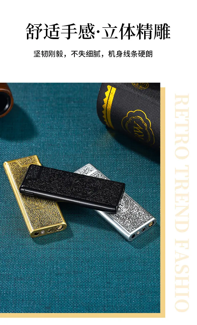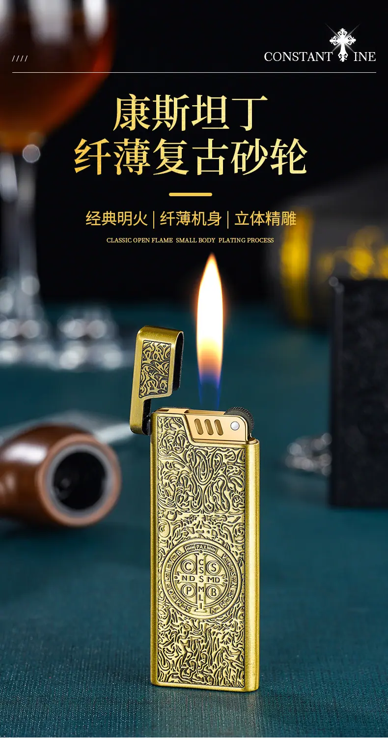 Isqueiro Inflável Retrô Esculpido Isqueiro de Roda de Fricção Ultrafino Chama Aberta Isqueiro de Cigarro Isqueiro Compacto Feminino de Alto Nível