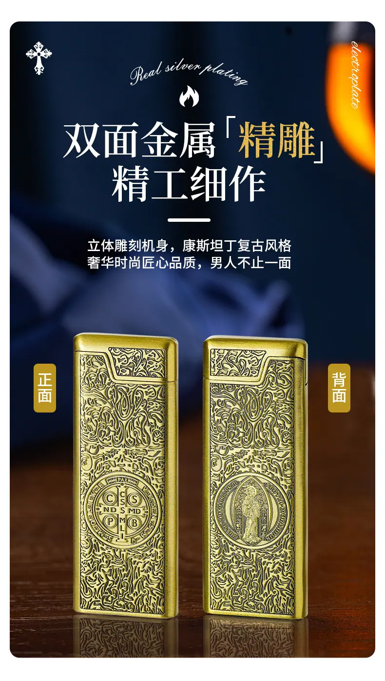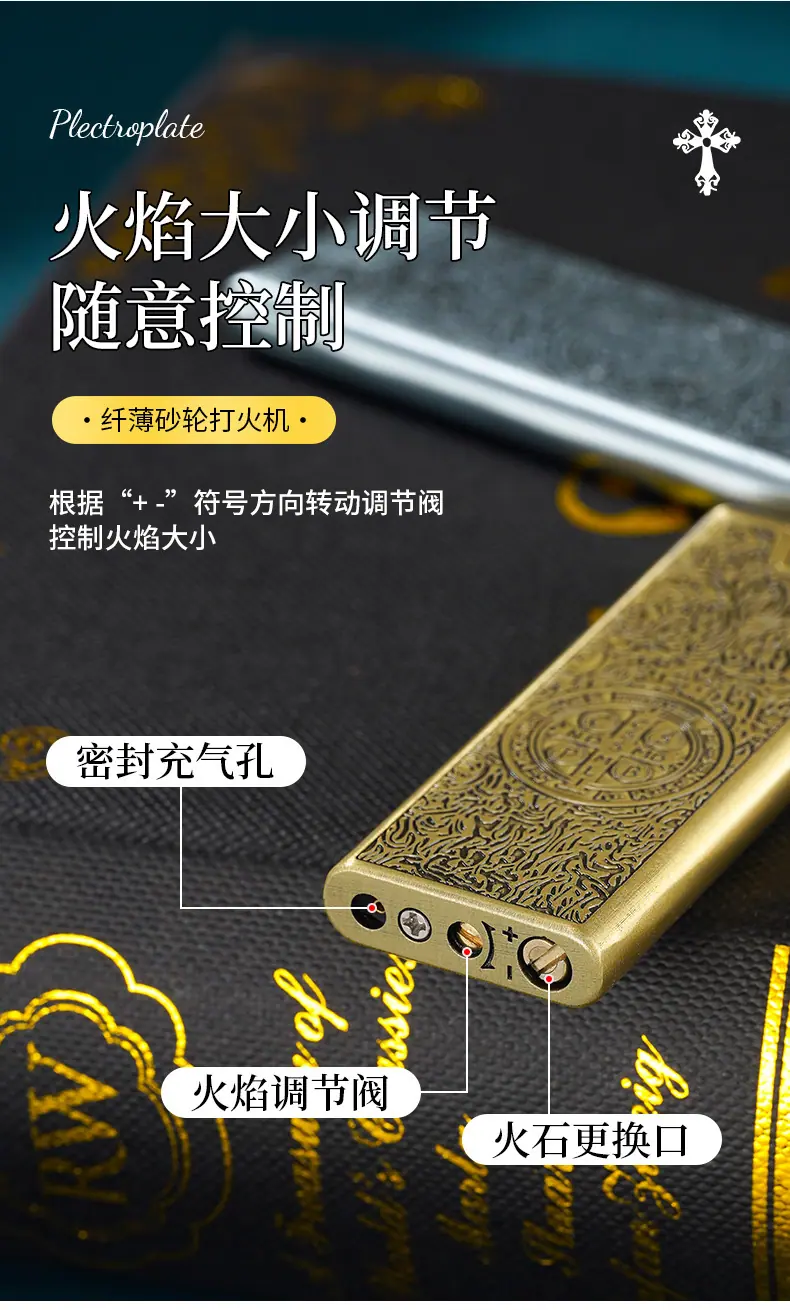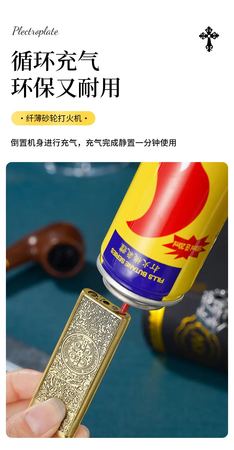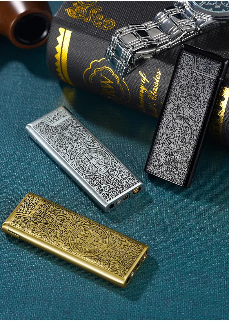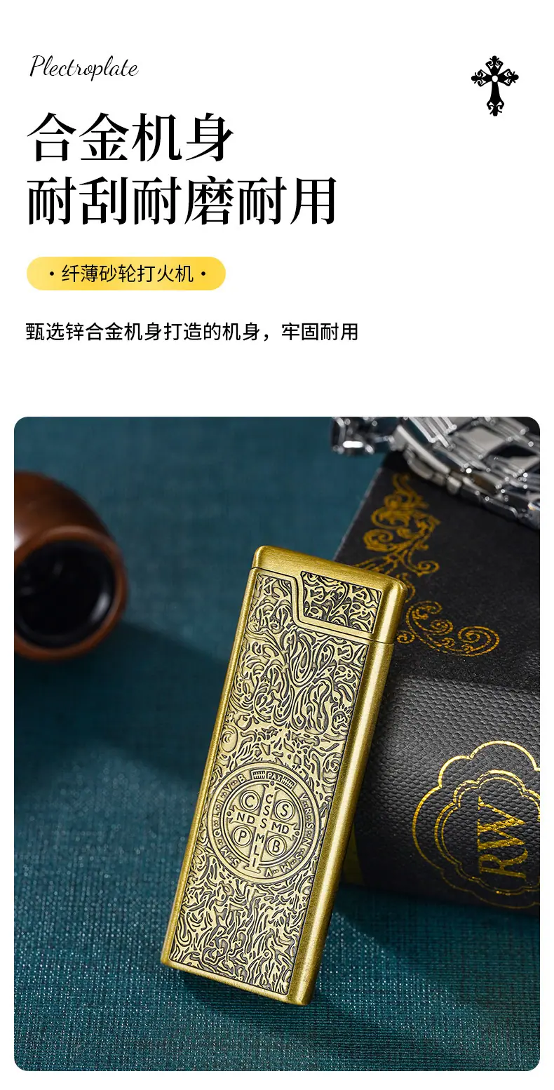 Isqueiro Inflável Retrô Esculpido Isqueiro de Roda de Fricção Ultrafino Chama Aberta Isqueiro de Cigarro Isqueiro Compacto Feminino de Alto Nível