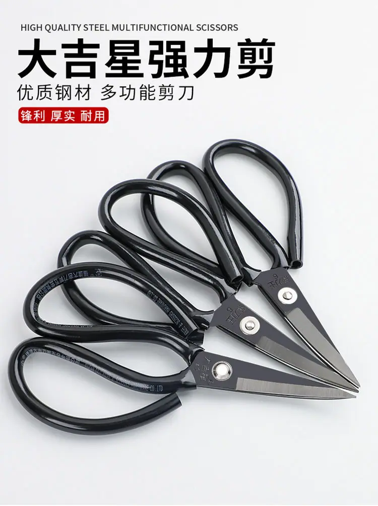 Tesoura de balancim grande Jixing Tesoura de cotovelo Tesoura de aço carbono forte Tesoura civil Tesoura de couro para roupas Tesoura doméstica