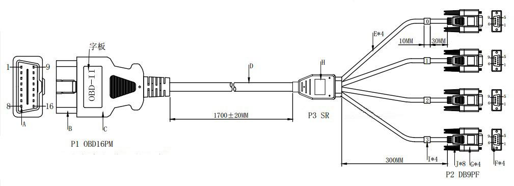 Nome do Produto: 16PIN/pinoUm cabo de conexão para ferramenta de diagnóstico 4 DB 9PIN