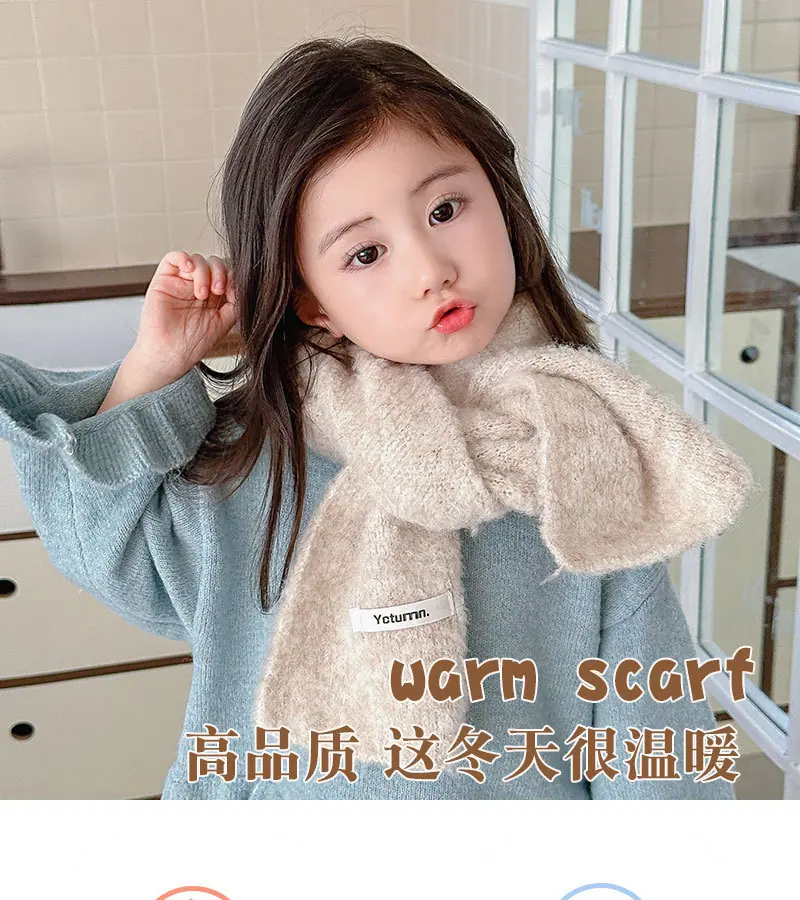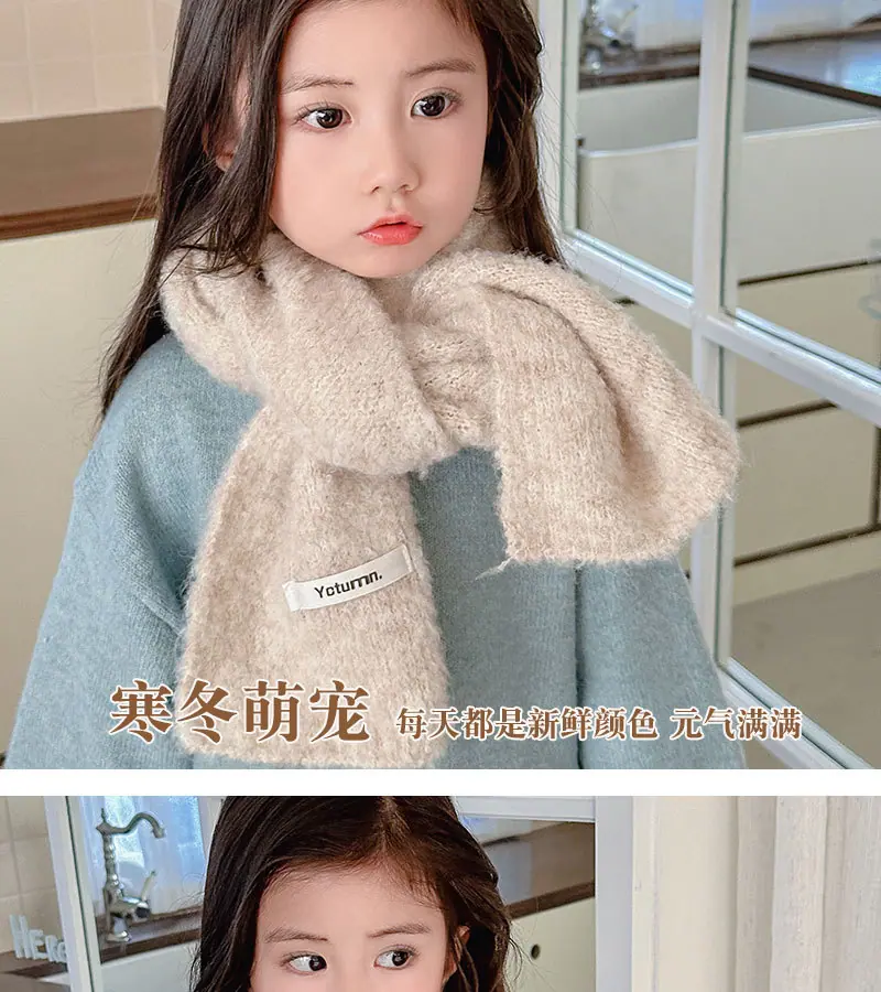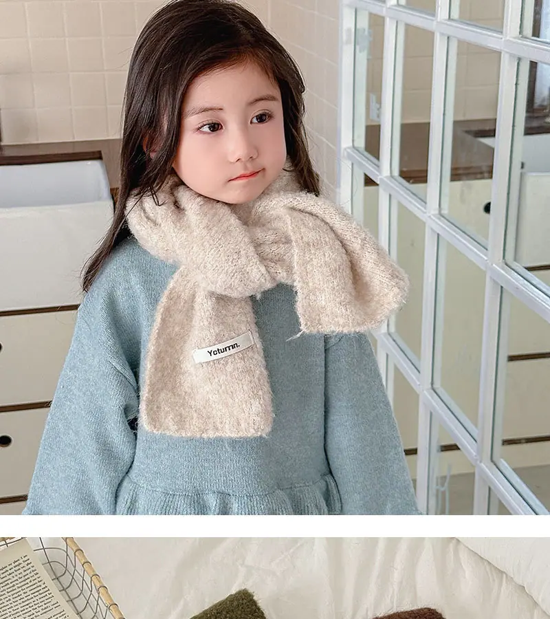 Cachecol infantil de malha de cor sólida Ins, pequeno, fresco, simples, combinando, outono e inverno, estilo ocidental, cachecol de pelúcia quente para meninos e meninas