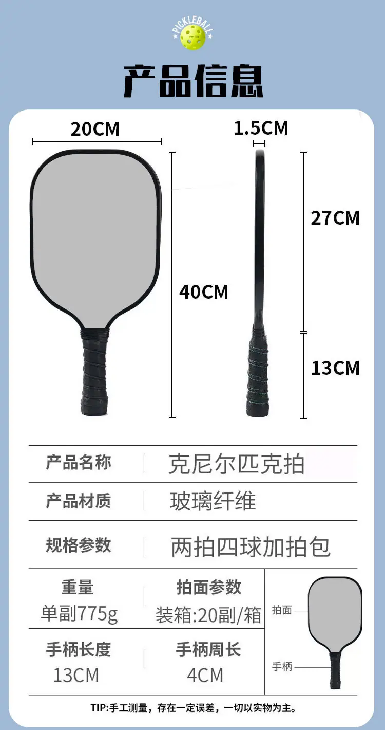 Raquete de Pickleball Kneer Nova Raquete de Fibra de Vidro Conjunto Adulto Nível de Entrada Preferido