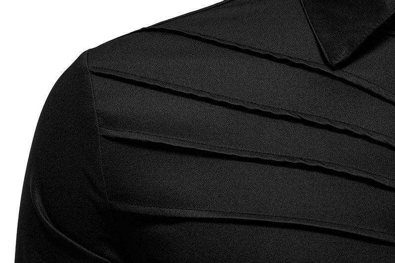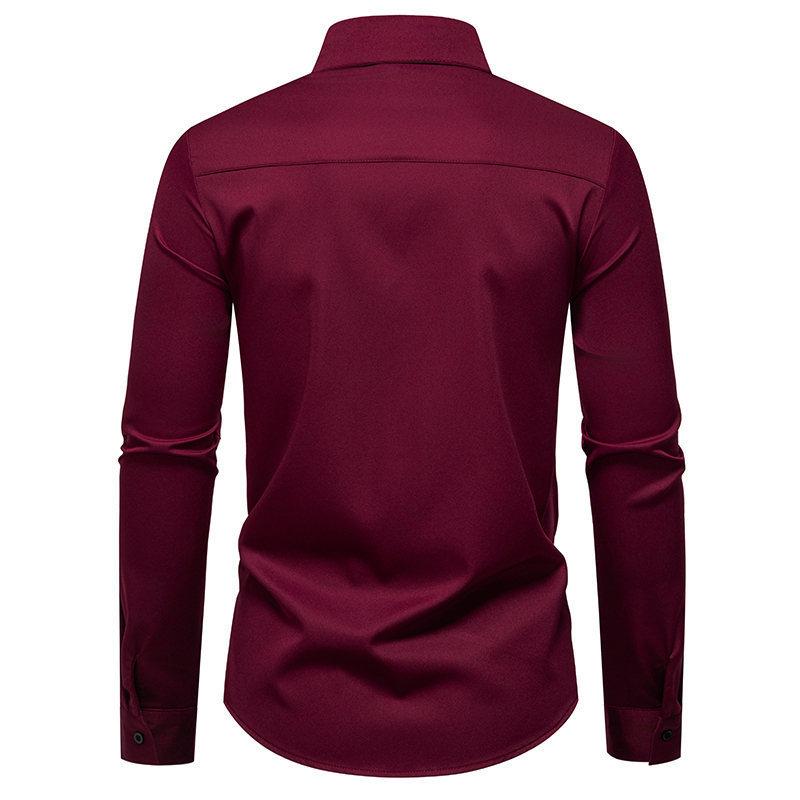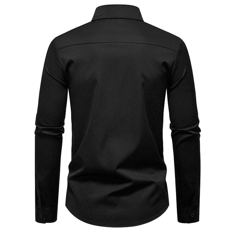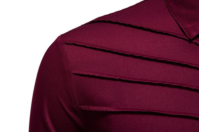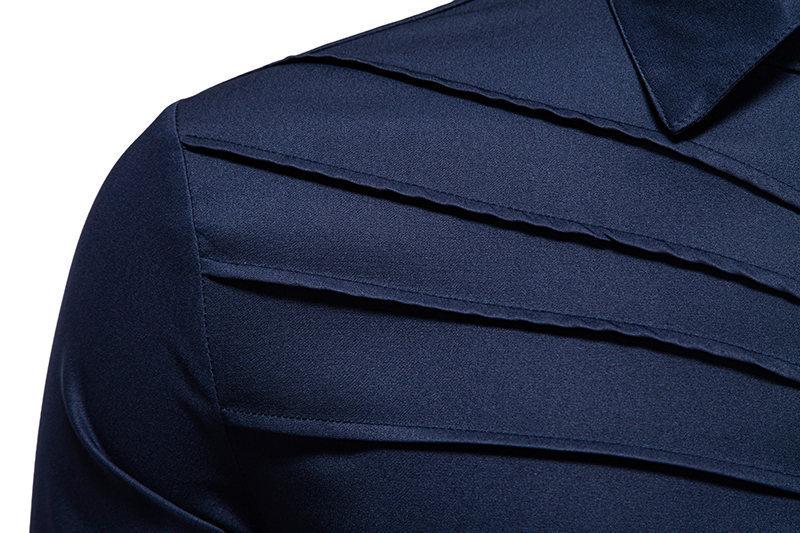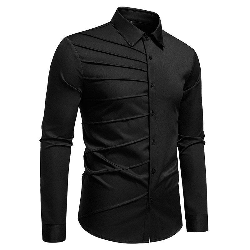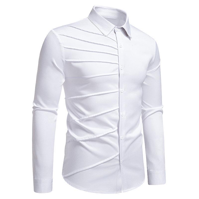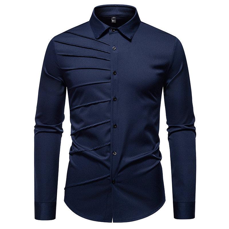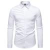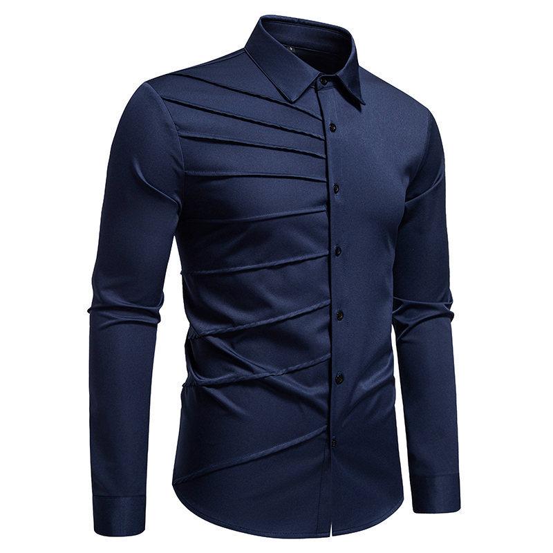2025 Amazon Transfronteiriço Novo Design Plissado Masculino Camisa Casual Versátil de Cor Sólida com Lapela e Manga Comprida para Homens