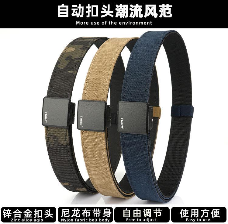 3.8 Cinto de Nylon de Camada Dupla Espessada para Pendurar Armas All-Match Casual Outdoor Calças Táticas Fivela Automática Cinto Masculino