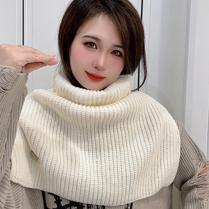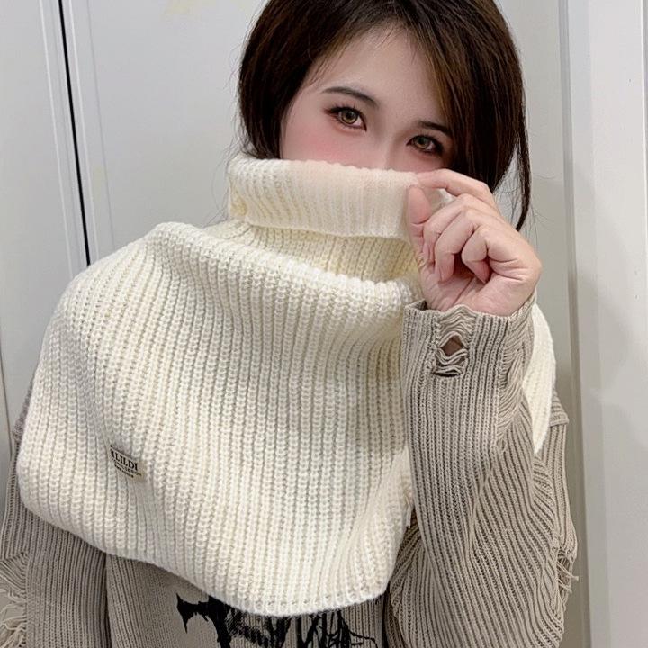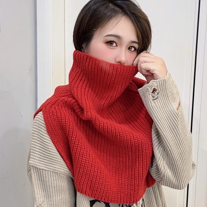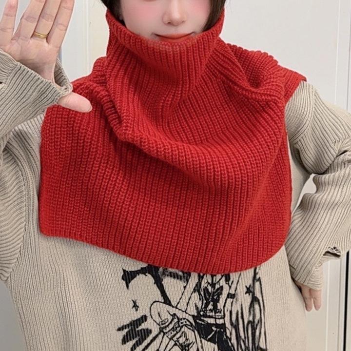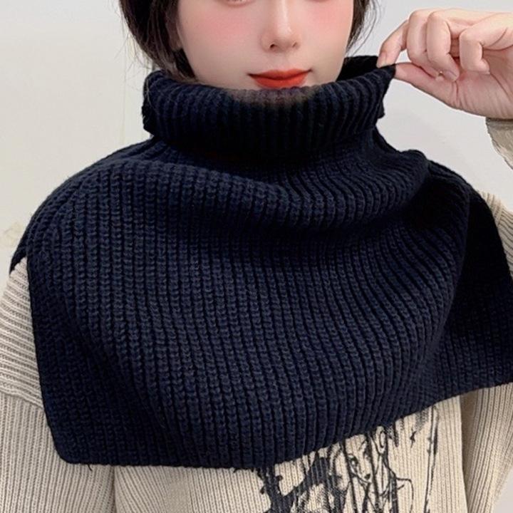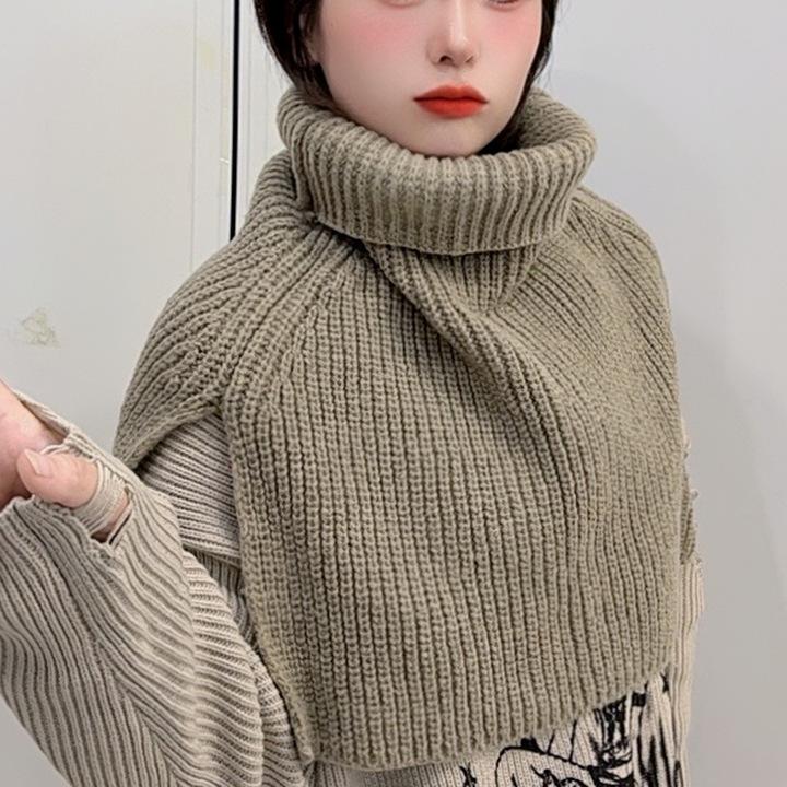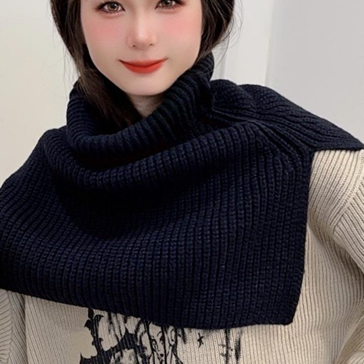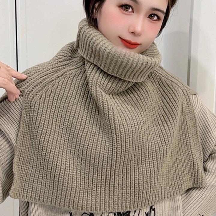 Outono e Inverno Estilo Coreano Versátil Cor Sólida Quente Pulôver Cachecol Gola Alta Fenda Cachecol Tricot Lã Xale Simples