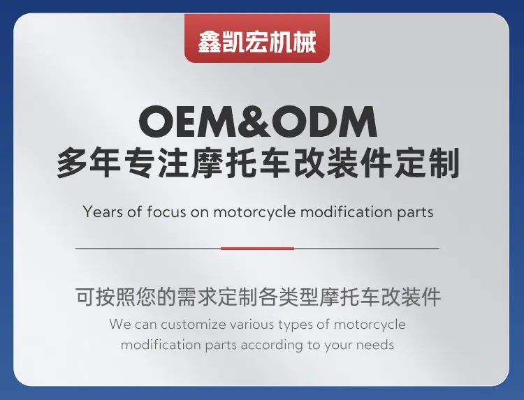 A Xinkaihong Machinery é especializada na produção de acessórios para motocicletas, e a fábrica de origem real possui seus próprios moldes, como filtros de ar, comandos de pé, pedais, comandos de mão, espelhos retrovisores, luzes, freios, etc. Temos uma equipe profissional de desenvolvimento de novos produtos, qualidade confiável e garantia pós-venda.
