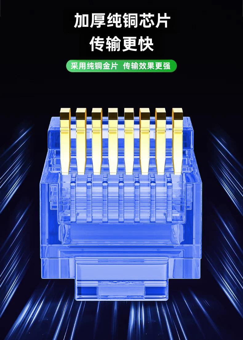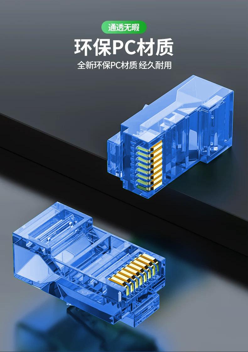 Conector de Cabo de Rede Rj45 Cat6 Utp Azul Categoria 6E Cobre Puro Não Blindado 8P8C Cabeça de Cristal Azul
