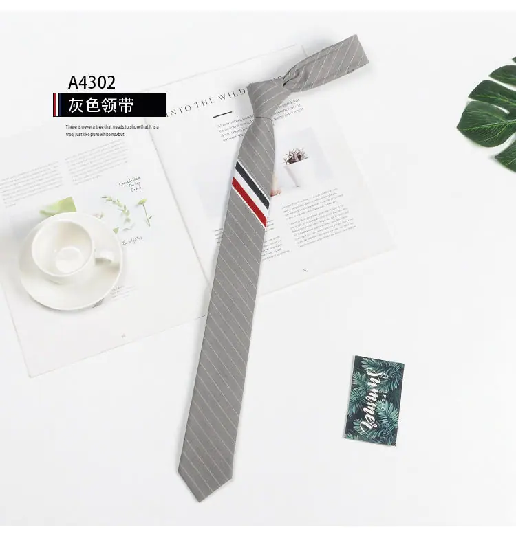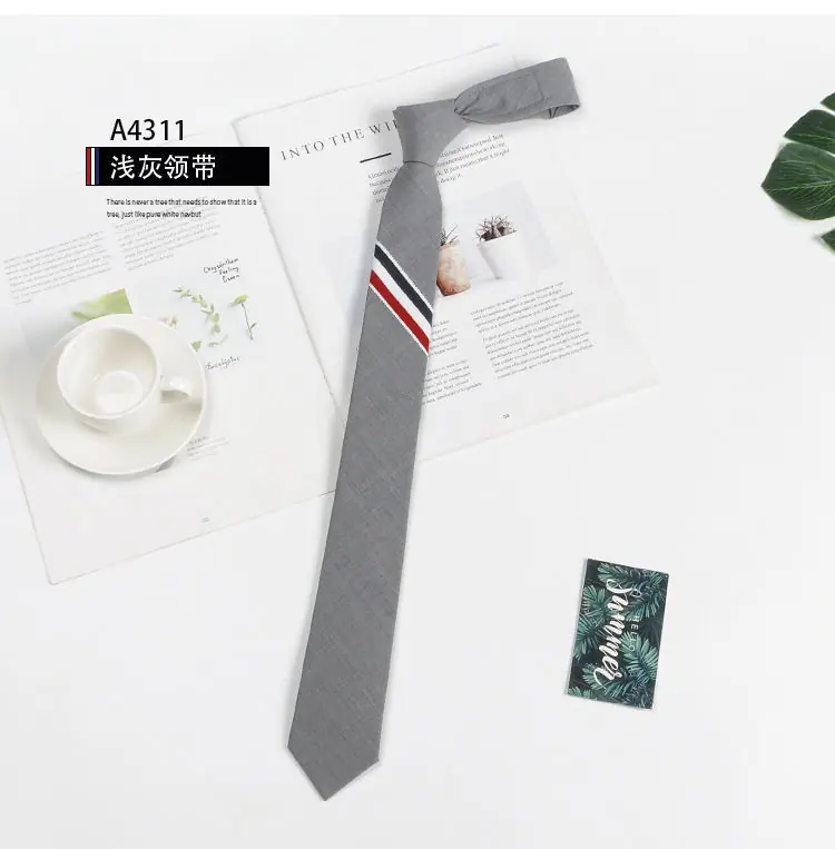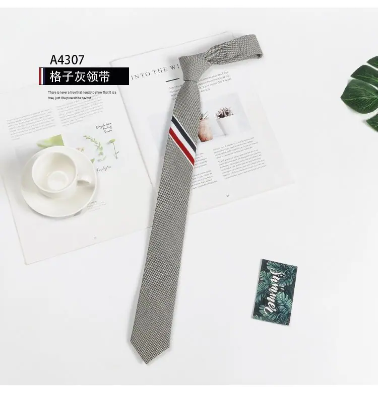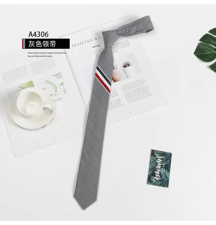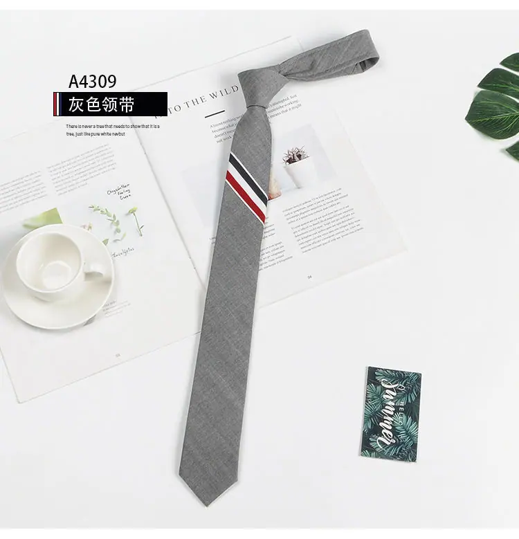 Versão Coreana Gravata de Lã Cinza Britânico Listrada Tricolor Tb 5cm Masculina Formal Negócios Preta Versão Estreita Amarrada à Mão Dk Moderna
