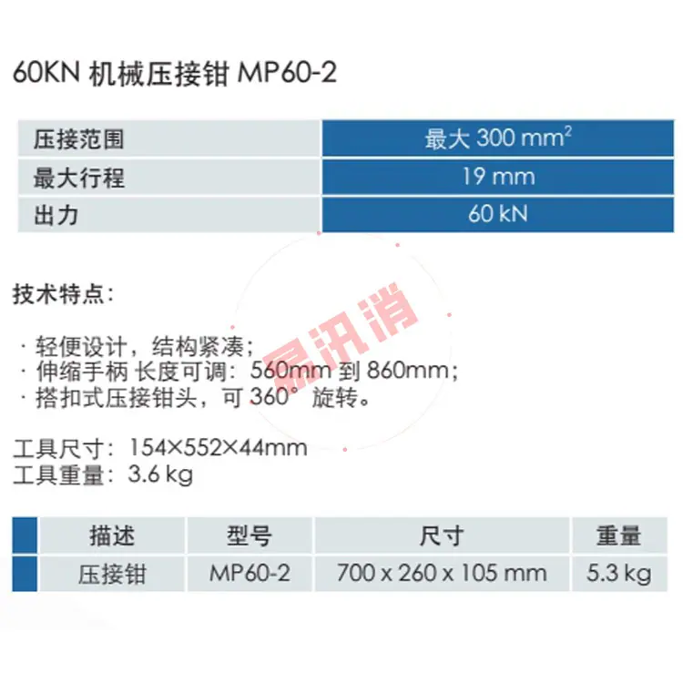 Alicate de crimpagemMP60-2 700 x 260 x 105 mm 5.3 kg