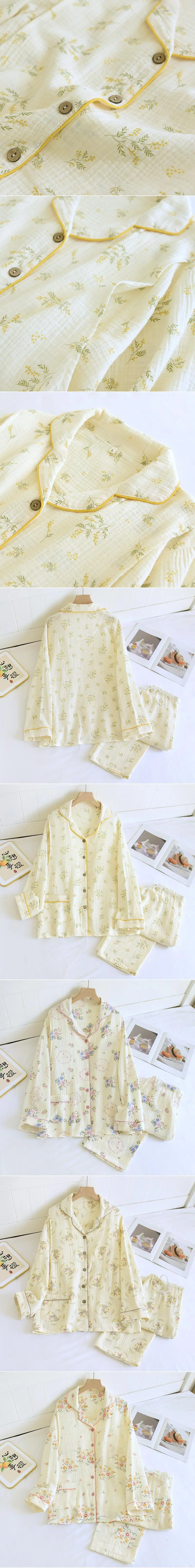 Vários estilos de roupas de maternidade de crepe de algodão puro de camada dupla primavera e outono pós-parto pijamas para gestantes gravidez espera pelo parto amamentação pijamas de maternidade mulheres